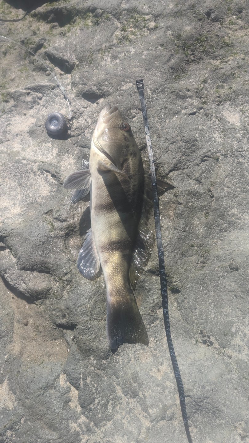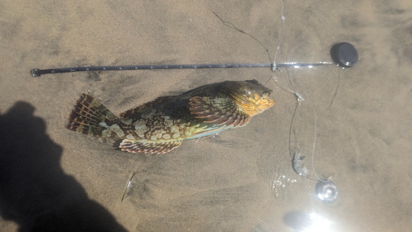 Then I landed this cabbie. I have never caught legal ones and this one is darn close. I felt that if I "straighten" it, it could hit the 15 inch bar. But that would be really close. It was gut-hooked so I was debating a bit if I would keep it. Nah, too close. Cut the line and let it go. I am still pursuing my first "definitely legal" cabezon.