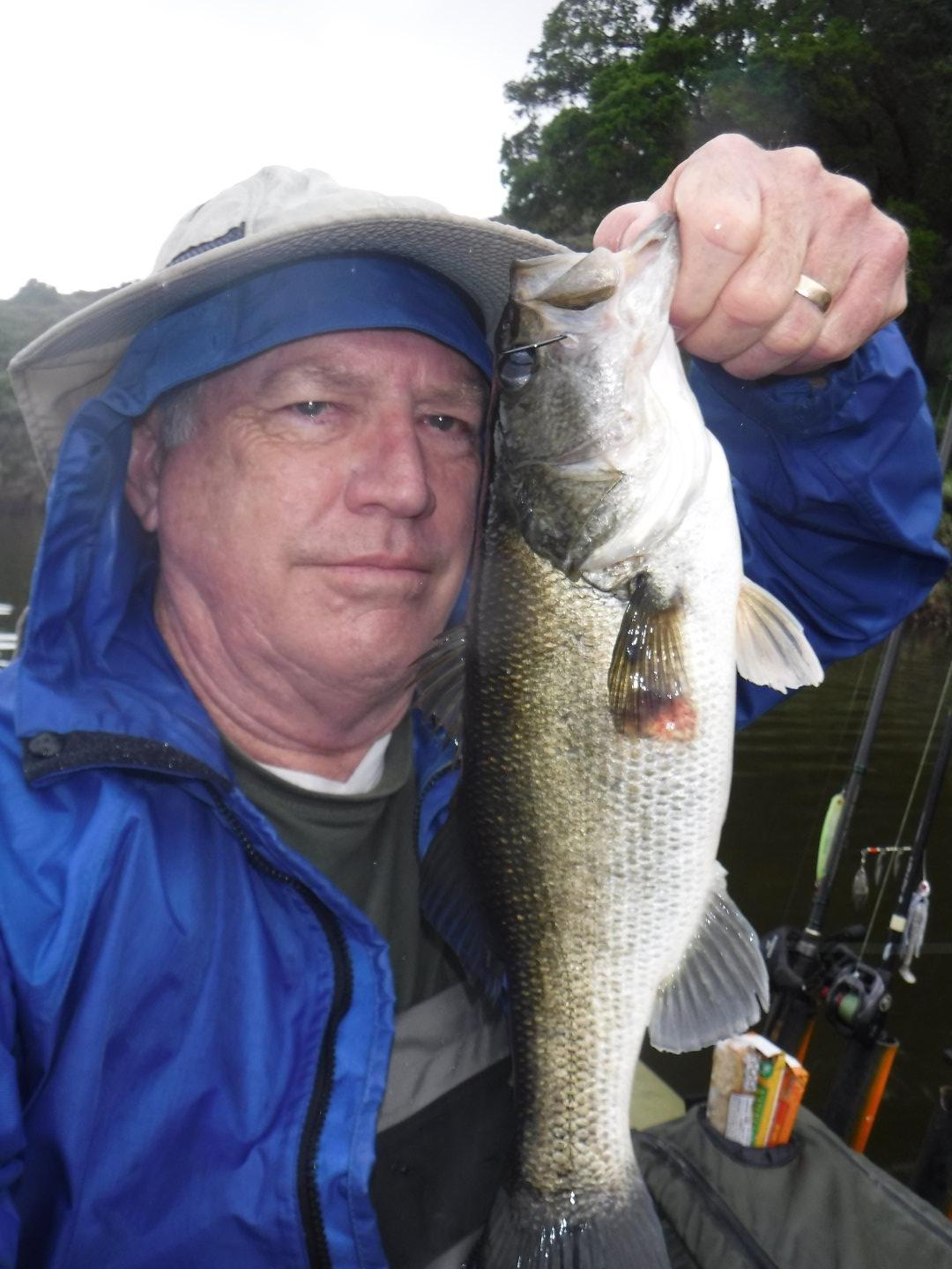 Well for the first few hours it seemed like bad business as usual at the old lake. Just cold and rainy! The game plan was to throw a buzz bait through flooded brush. If that failed, a spinnerbait through flooded brush. I just knew they had to be in flooded brush! Well, if they were, they were not interested in my offerings. Started flipping stick baits up almost onto shore. Finally, about 7:00, I caught a respectable 2lb fish. My fourth fish of the year in 3 trips. Not a stellar Spring! Then I caught a 13... inch Bass. Then I hooked what looked like a 4 pounder that tail-walked off my line Just 3 feet from my net. That felt bad and good at the same time! Seems the lake is slowly waking form it's rainy winter slumber. Caught 3 more and lost two more. About 8 bites, in all. Broke my rule about pic-worthy fish. This one was just over 2 pounds. Not sure why it is sideways. Just turn your monitor sideways.