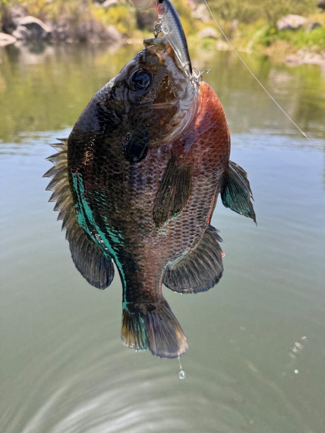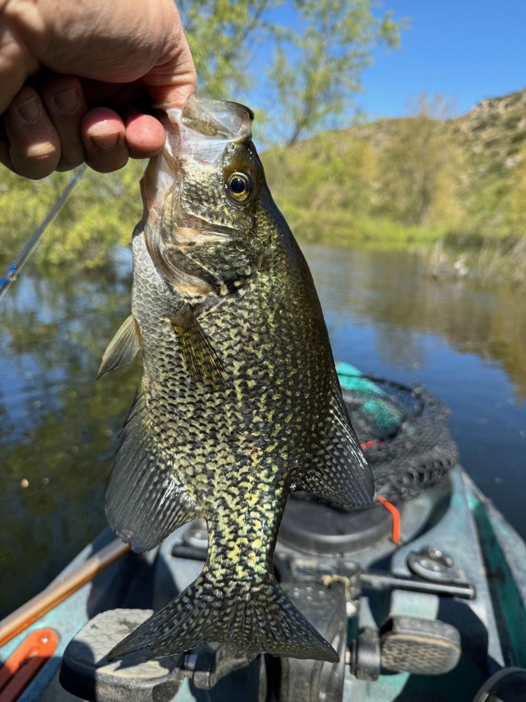 Did get a trifecta though, caught a few larger bluegills and a few crappies, so that's fun. On the way back in, the jerkbait bite finally picked up and I had fun in the coves catching a decent number of bass, but nothing large for me, mostly clone-lights in the 1-2 pound range. Still a fun day, and great to fish with a friend.