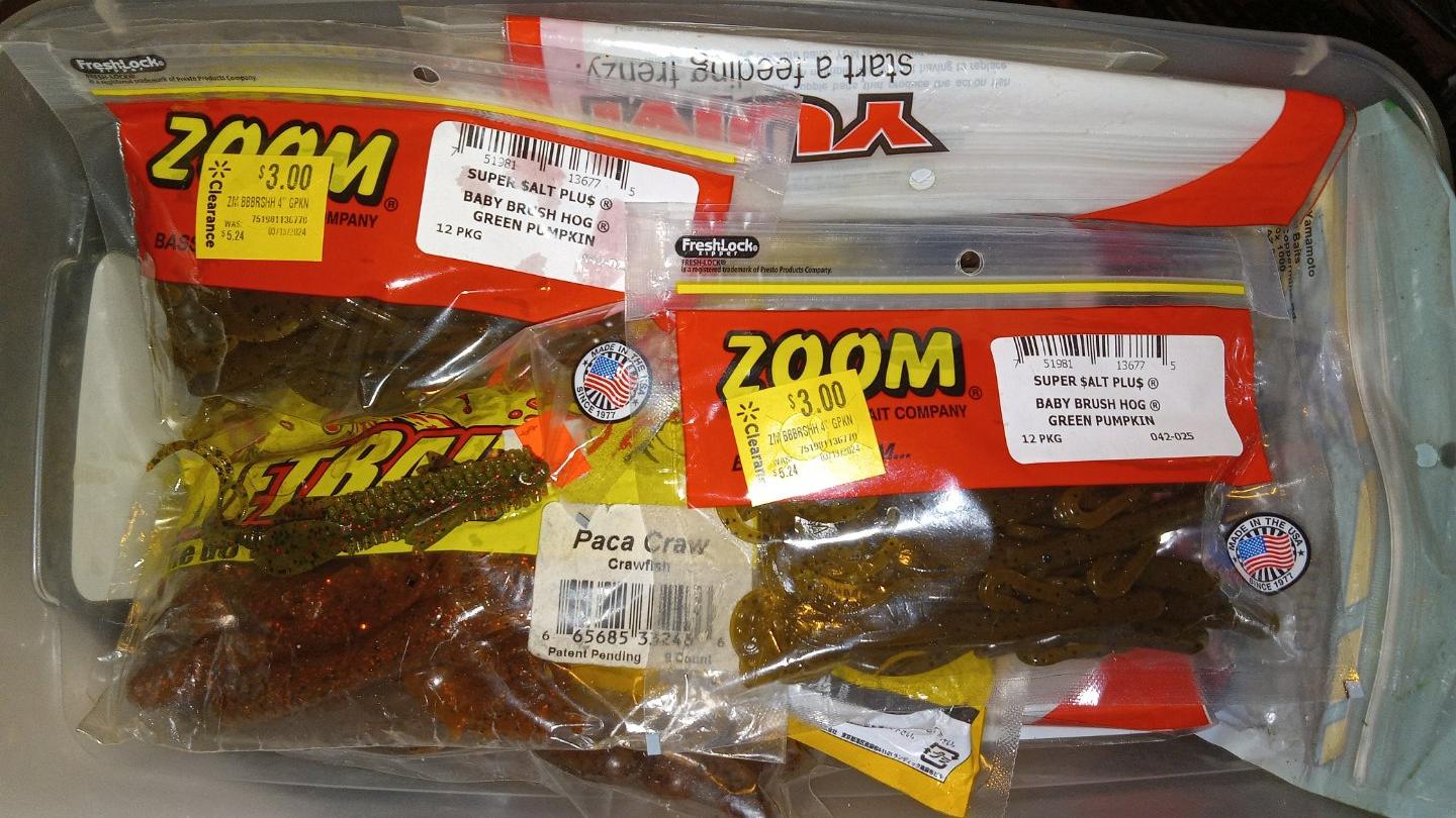 Mostly open packs of baits...25 cents apiece for kinami or yamamoto or powerbait. I have a few of these.