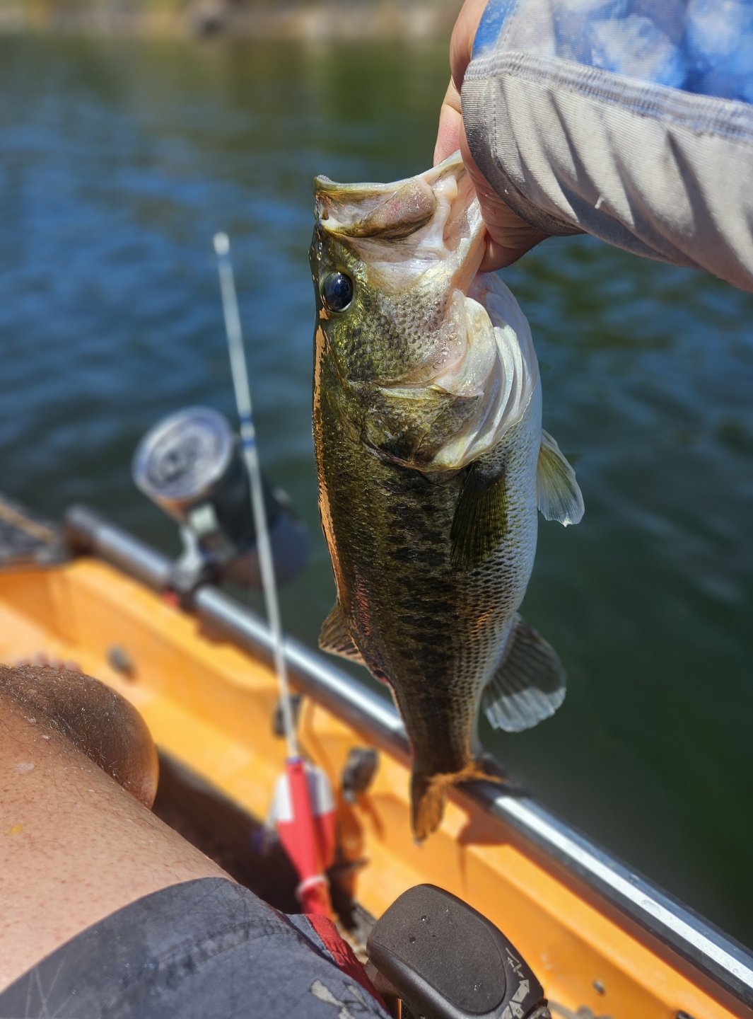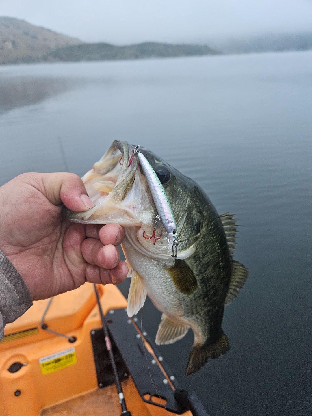 Trying out my brothers Pro Angler. I normally have a double seater mirage that I use. It is lighter but definitely not as stable as the pro angler. Going to have to get a pro angler. It was definitely easier on my back than my old mirage. Headed out in the dark and through the fog. Spent a bunch of time looking for pins minnow. Did the pull the line to test to see if it was weak. Broke the line and found a section that was not flawed. Tied it on and tossed it in the water to cast. Tied it to the wrong line. It floats so not that big of a deal unless you are using a flashlight in the fog and makes it impossible to see. Found a bob cat on the rocks and was kind enough to stand up for me to take a picture. Morning was nice and cool. Caught 26 by 9 AM. The jerk bait was working and got on a top water bite. Caught many of them on the IMA skimmer walking bait. They would bust and you would cast on them and get bit. Tried blind casting but did not get any that way. Trick was to cast on them when they were chasing something. After that did not find a honey hole. Fishing the edge with a texas rigged worm seemed to work the best. Would hit the edges and it would get hit on the fall most of the time. 4 lbs was my biggest. Caught a bunch of almost 4. Stayed till the end left with 51, so caught 25 from 9 to 7.
