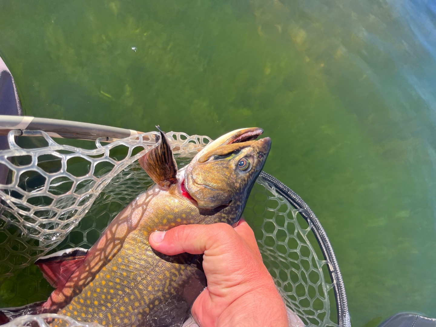 Got up early the next morning and was at the Kirman Lake trailhead pumping up my tube and setting up my E-bike by 8:30, on the lake fishing by 9:00. Bite was a little slow with the sunny/calm weather but I managed two Giant 17-19” Brook trout before calling it a morning around noon. Made my way back to the Miracle mile for a repeat of the previous nights dry fly action before retreating to my campsite.