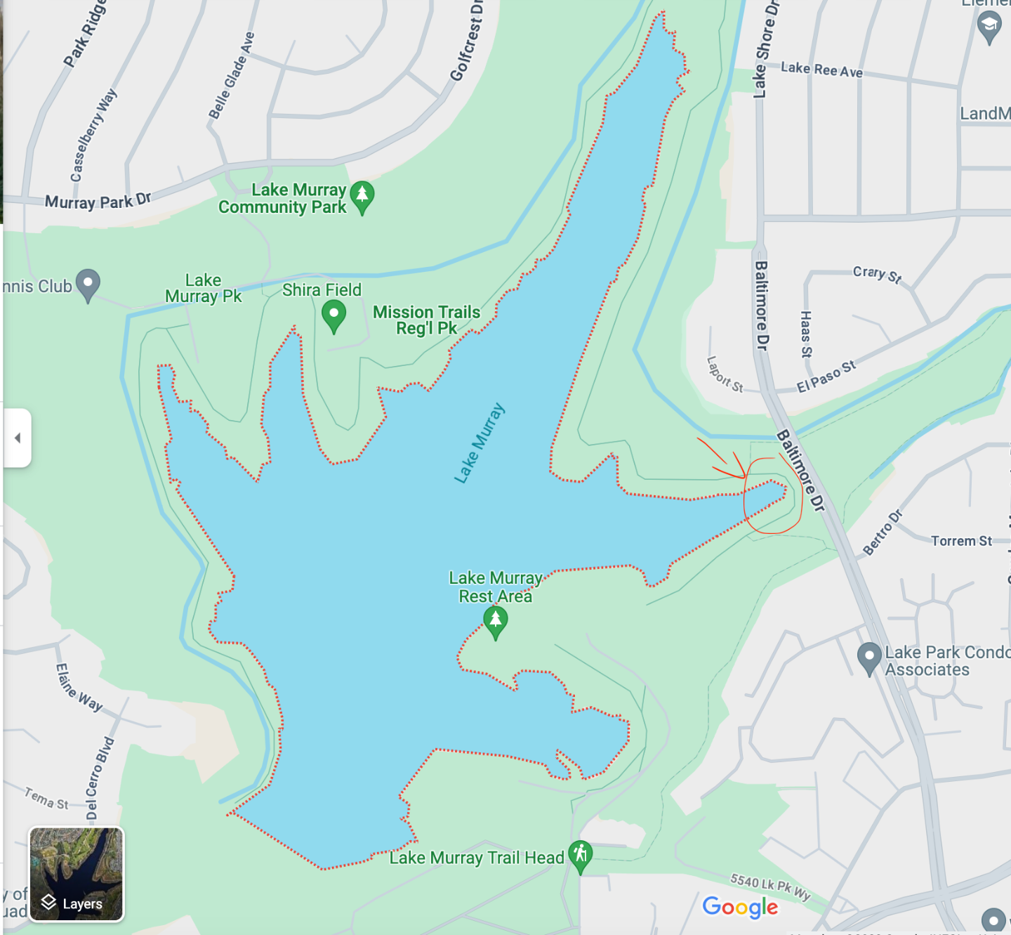 If that's the correct parking area, my guess would be it's the point near the "Lake Murray" text.
