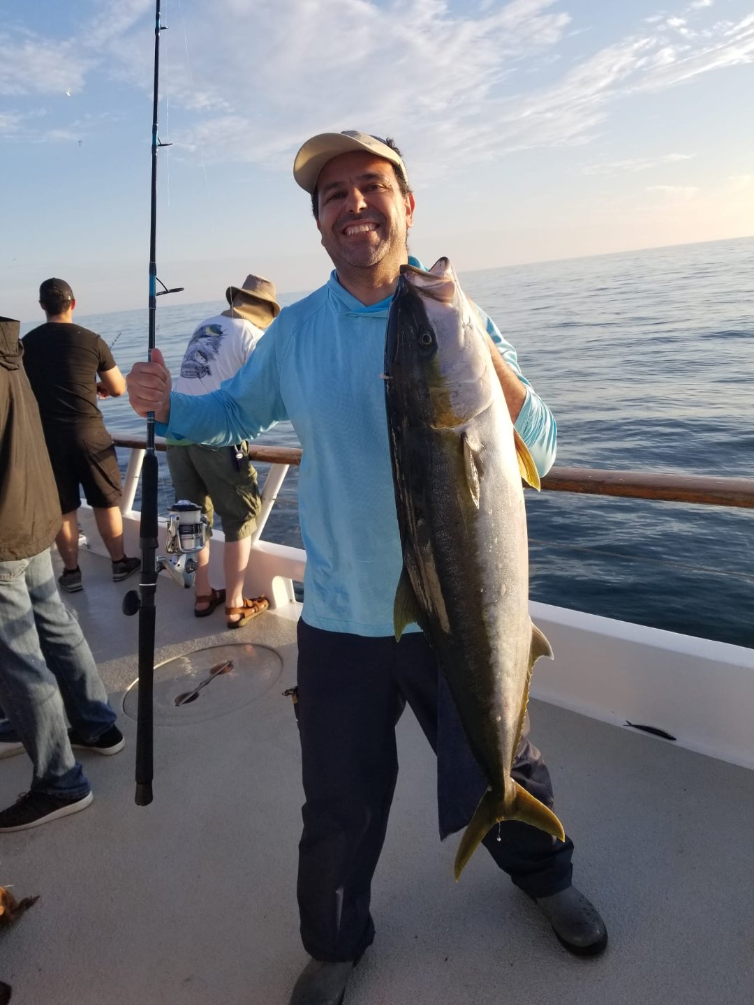 Excited by the recent fishing reports, I booked a spot on the Twilight trip on New Seaforth. Captain mentioned occasional yellowtail catch on fly lined sardines as stick baits. On the way to the fishing grounds, captain already spotted yellowtail action, fish boiling on the surface. I was super lucky and got bit on a fly lined sardine. I was using 25 lb set up, captain's recommendation was to use 30-40 lb, I was a little nervous. It peeled tons of line but eventually I managed to land it. Total of 4 yellowtail landed and another 3-4 hooked that were lost. Mine weighed 30lb on the hand scale, one of the bigger ones weighed 35lb.