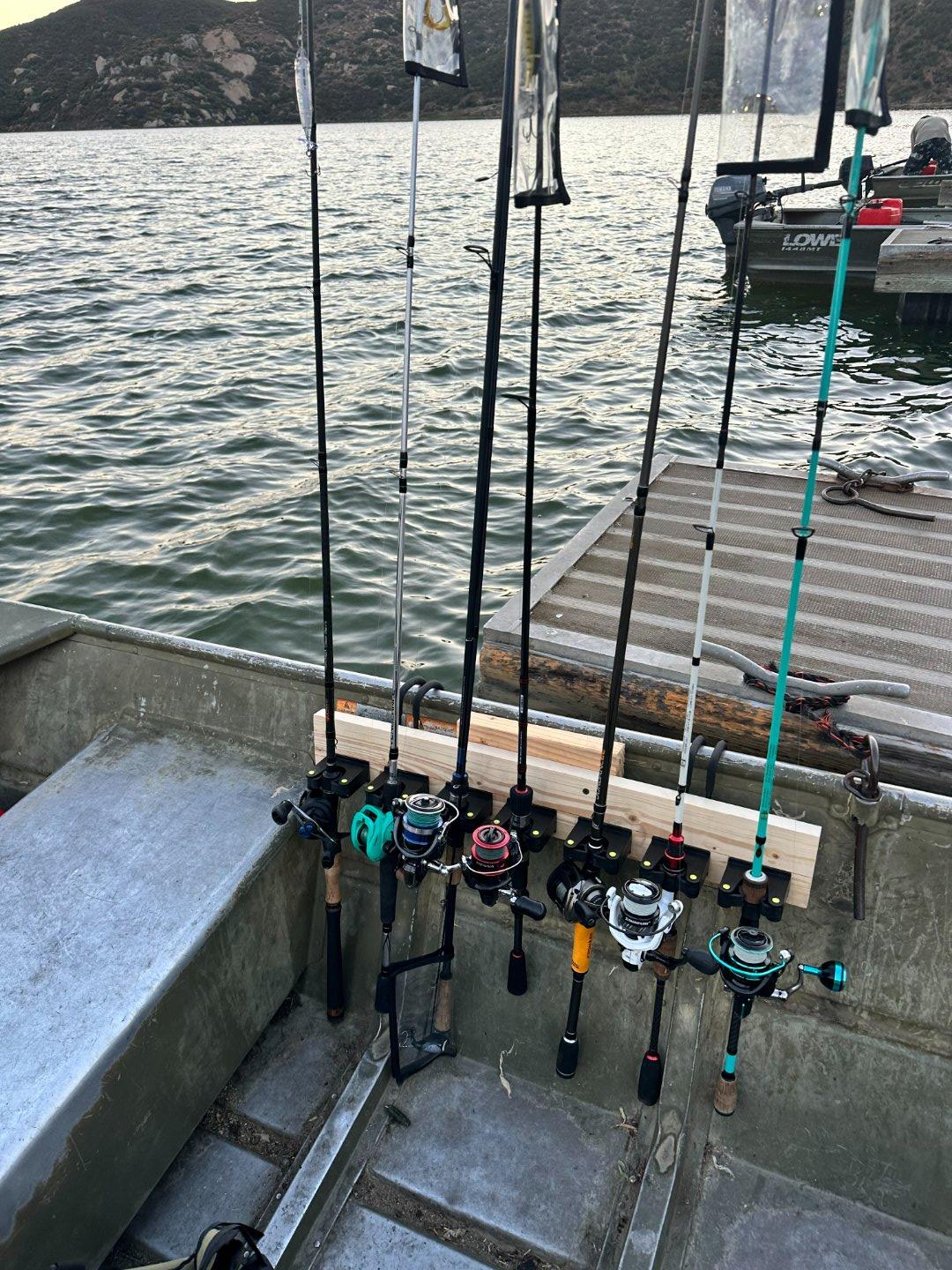 Also, I wanted to share this cool little rod holder I made for super cheap. I was sick of rods lying all over the boat so put this together in 20 minutes for $20 at Home Depot... worked great!