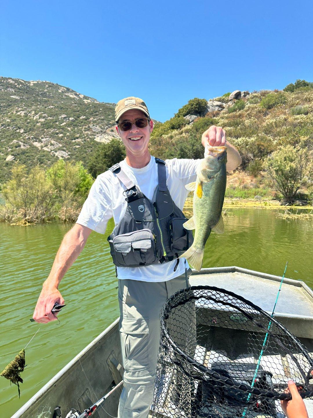 The lake is visibly lower after being drawn down, and what seemed like an algae bloom had a significant impact on clarity -- the water was a light neon green color. Theo (my youngest and increasingly the best fisherman among us) got a few on reapers and small swimbaits. We went over to Becky's cove -- no luck (except we ran into @Pourboy which was cool -- super nice guy and offered us some great advice, plus he's like a celebrity for my boys so they were a bit awe-struck). We caught a couple standard sized fish deep by tree that sits in the middle of the lake by Beckys, then picked up a buddy at the dock and motored to Hauser. We only saw one boat down there the entire time. The water was completely still -- zero activity, sun beating down -- and we only picked up one decent sized fish on a roboworm. Fished Pigs and the cove between Pigs and the dock and picked up some fiesty baby bass and big blue gill. Everything seemed to be hanging out in deeper water.