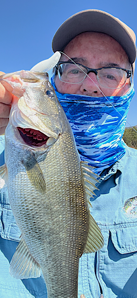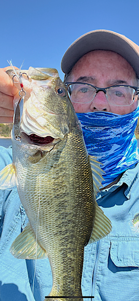 Then things got a little better as I mixed it up with a variety of reaction baits and started pulling in some bass. The unfortunate thing was I missed a number of bass. I had 5 bass shake off a spoon all on jumps right near my kayak(can't remember ever losing that many in one outing). Then I missed 2 bass on flukes, 2 more on a Hover bait rig and another one bass came unbuttoned on a spoon on the way back to the boat dock. To lose 10 bass is not good by any means, but on the positive side I ended up landing 14 bass. Nothing big, mostly all clones, but it was very fun!
