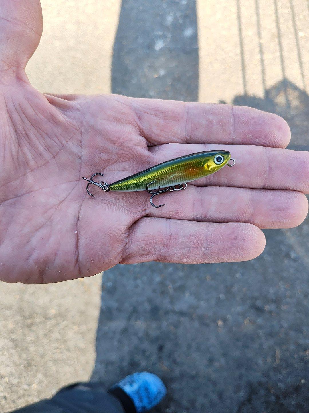 After catching probably 2 dozen dinks (1 pound or less) I had about decided I had finally found a topwater walking bait that was so small the the bigger fish would just ignore it. Them all of a sudden....wham!