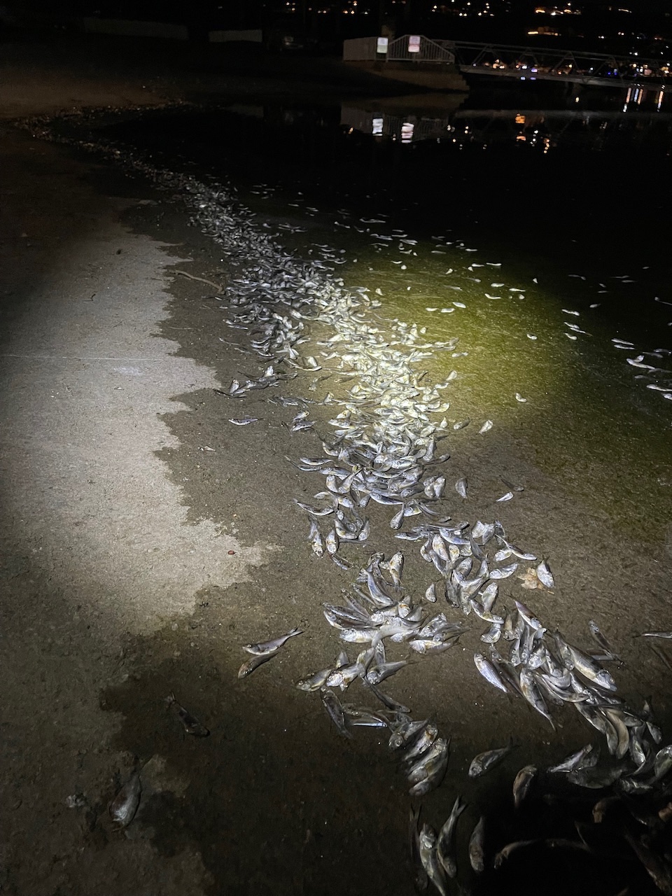 Went out tonight to fish a little, walk around and see a bunch of shad die off. Temp here is around 70 during the day but decreased to north 40 at night. This is my first time seeing a lot of them die off like this. What gives?