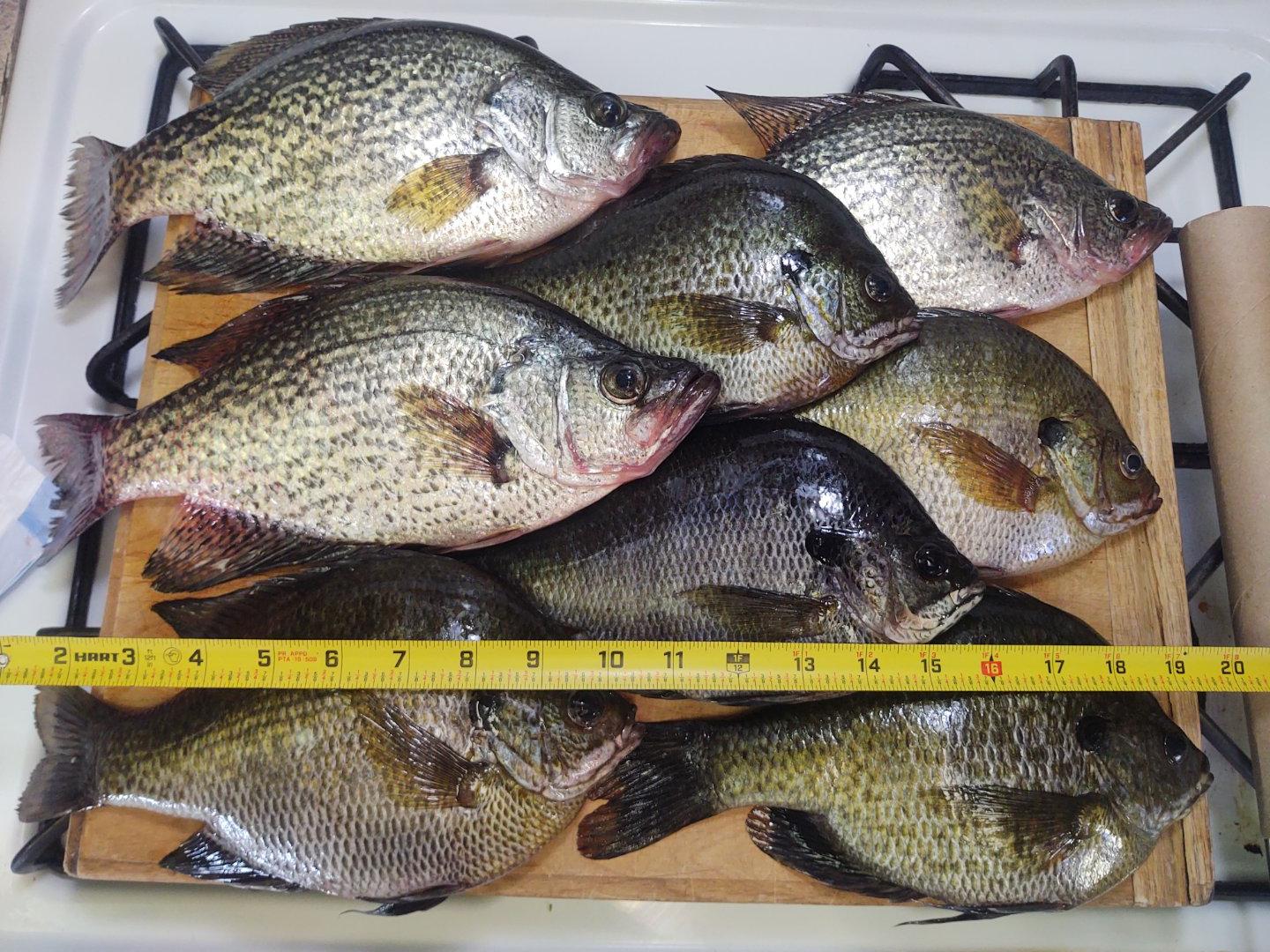 Did the usual. Trolled around in Harvey's for crappies or bluegills. The algae is really bad. It kept collecting on the lines, jig and split shots. Had to reel in every few minutes to clean the crap off. That wasn't fun. It was slow until about 9. Definitely not an early bite. Things picked up a little after that.