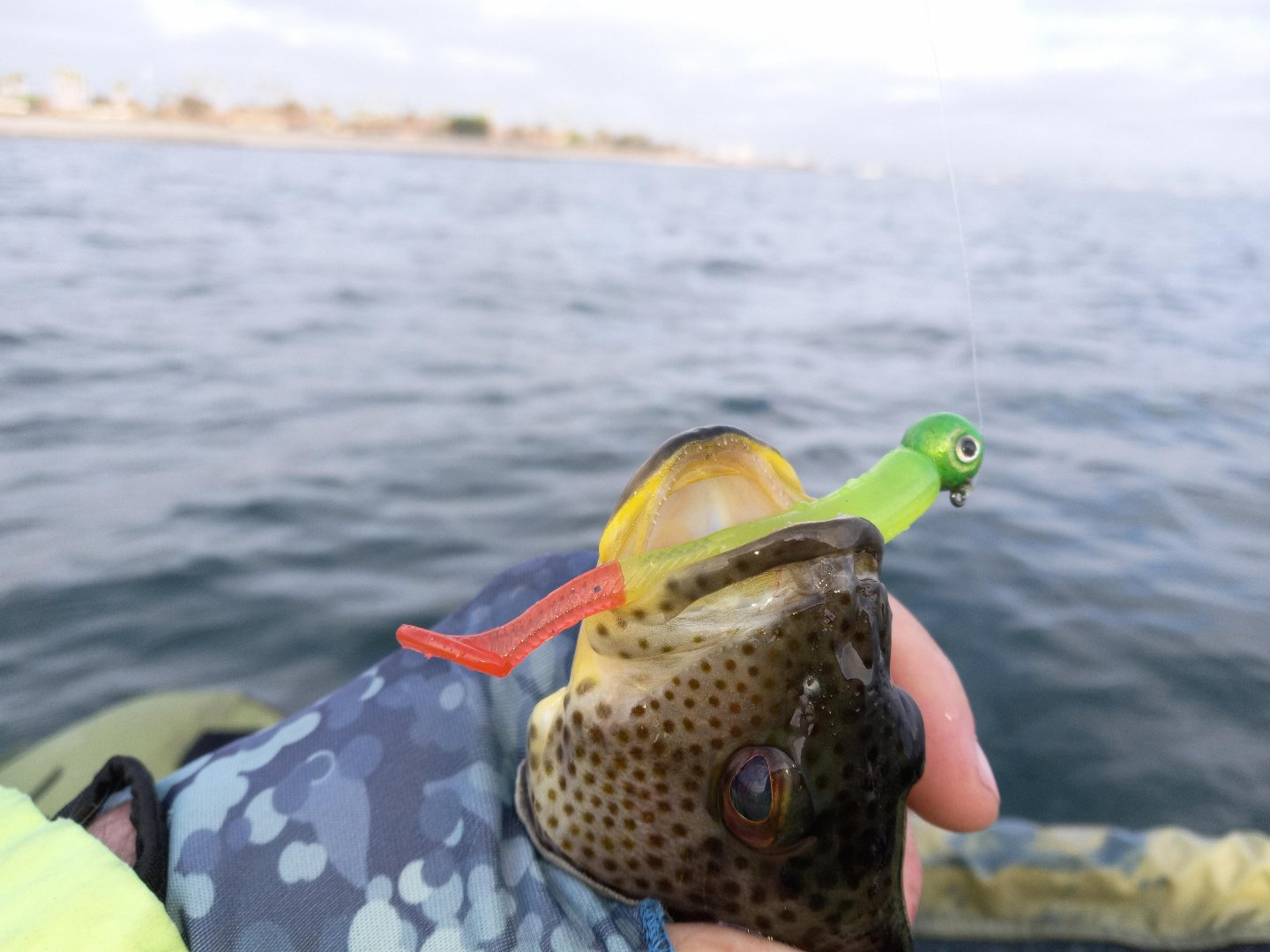 Looks like a great day to me, that was one of your home made baits I think, nothing more satisfying than getting them on your bait, what size head was that?