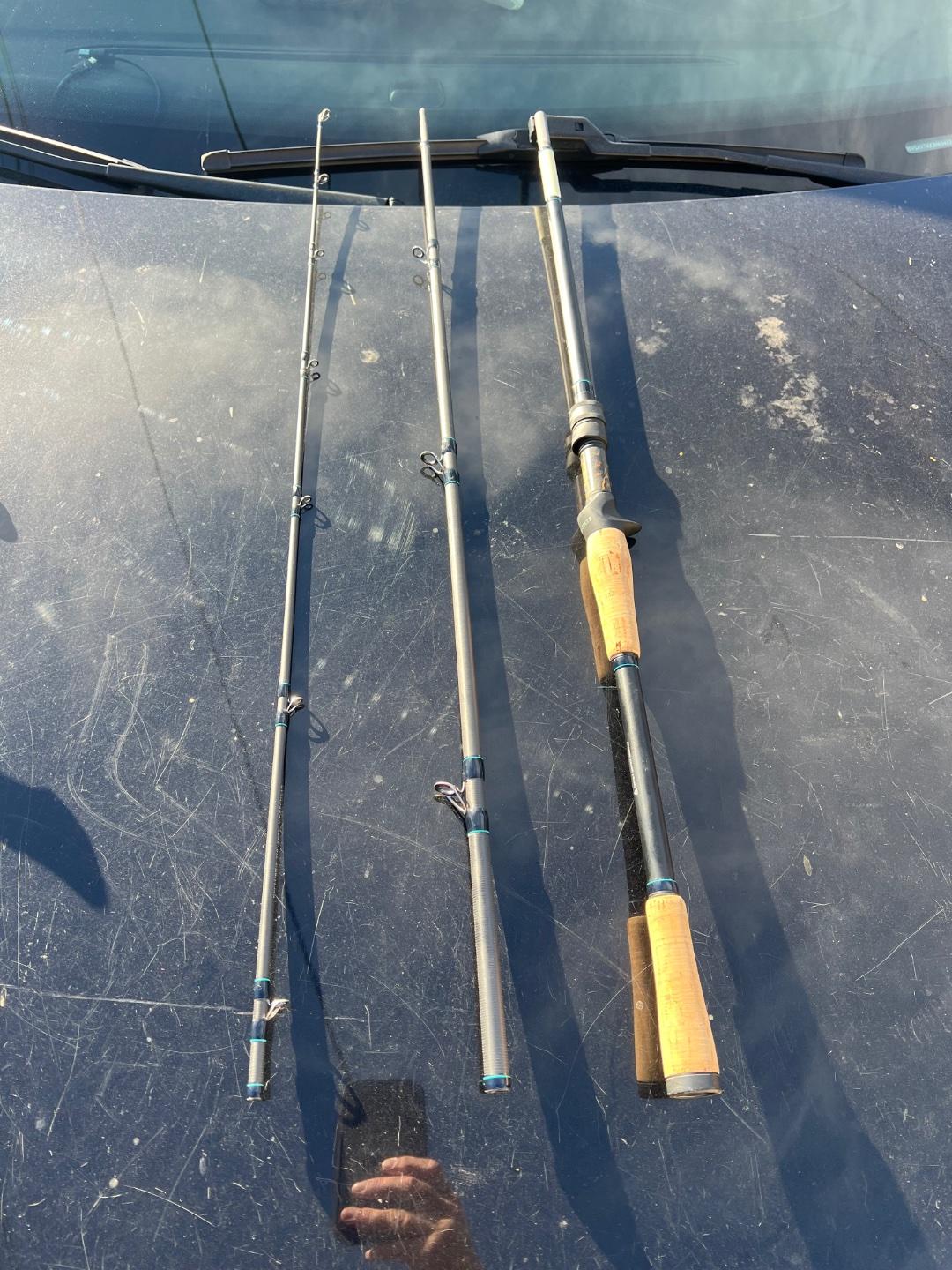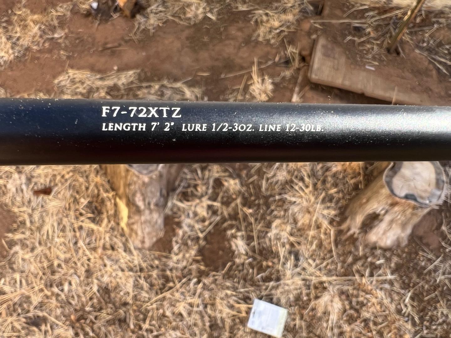 Megabass Triza "Dragoon" 3 Piece big bait rod. 7'2", XH/Regular. Triza are Megabass' series of travel rods that have the light weight, sensitivity and power of their one piece rods. The Dragoon is made for big baits and will handle treble hook baits and single hook reaction baits from 1/2oz up to about 3oz comfortably. Small glide baits (Killer TK rod), big topwater. deep cranks. This rod came with two tips - a regular taper (included) and a fast taper tip. The fast tip got crushed in my vehicle so it will not be included. As such, I'm offering it at a prettty unbeatable deal. These sell for $399 new with both tips. With just the fast tip I'm offering this for $175 cash. No trades.