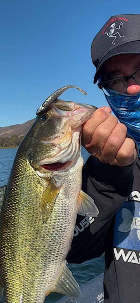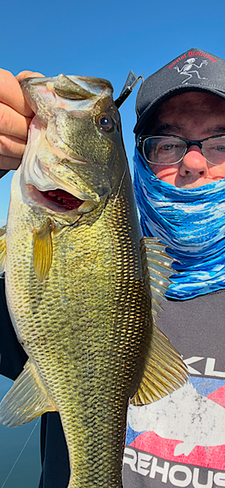 I was pretty lucky as the bass seemed to like the variety. Despite 3 bass coming unbuttoned on jumps near my boat, I was able to land 12 bass (without one micro bass..yay!),all out in deep water. (What's funny was I was stuck on 11 bass and then lost one. I wanted that 12th bass so I stubbornly stayed out there for another 35 minutes to pick up my 12 fish