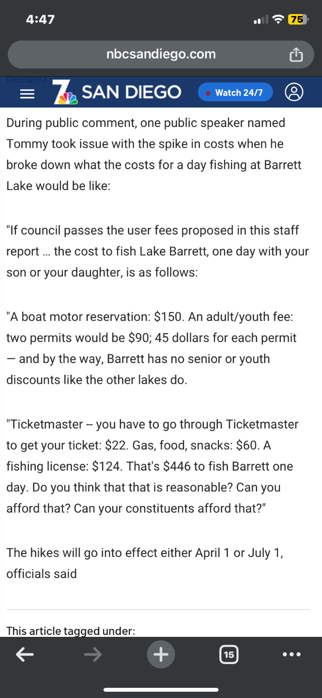 Public input does make a difference. A huge difference. When covid hit and they wanted to close all the lakes, we formed a group out in east county and met a couple times a month to keep the lakes open. The group spearheaded an email campaign sending polite letters to the city councilmen. We met with a few politicians. The emails continued, politely. The point finally got across and Scott Sherman asked me to call off the dogs as the city council got the message. The county got involved, got the money to the city and the lakes stayed open. There was a ton of behind the scenes work from some dedicated fisherman and a lot of help from the bass fishing community.