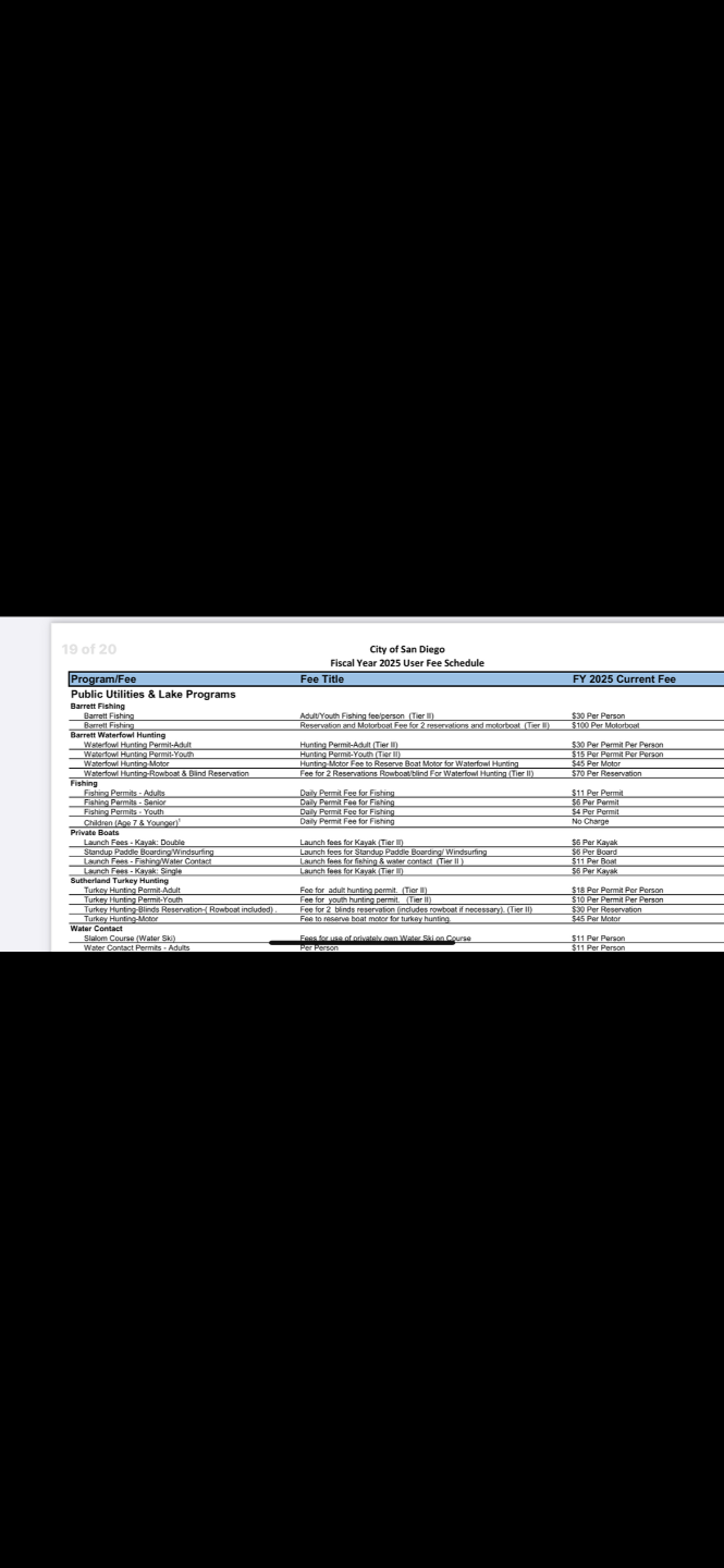 I know the Council voted to pass the items #201 & #202.......but within the 9 pages did anyone see if they increased the fees for Barrett? I contacted the reporter from NBC 7 (Eric) who wrote the article and will email him the statement with recommendations for other revenue sources. He said he will look at it for a possible follow up article. Nothing will happen with me as I have the PCS show in OC the next 4 days. I just don't think enough thought was given to this other than "lets just raise the user fees". Stay tuned.