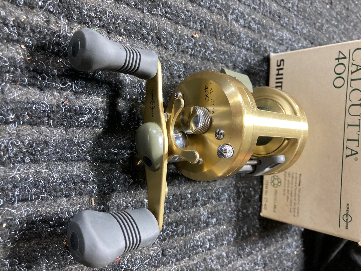 For sale OG Shimano Calcutta 400b. Reel was recently professionally serviced and had new handle knobs put on. 10/10 mechanicaly. Used in freshwater only. Comes with original box and paperwork. $120