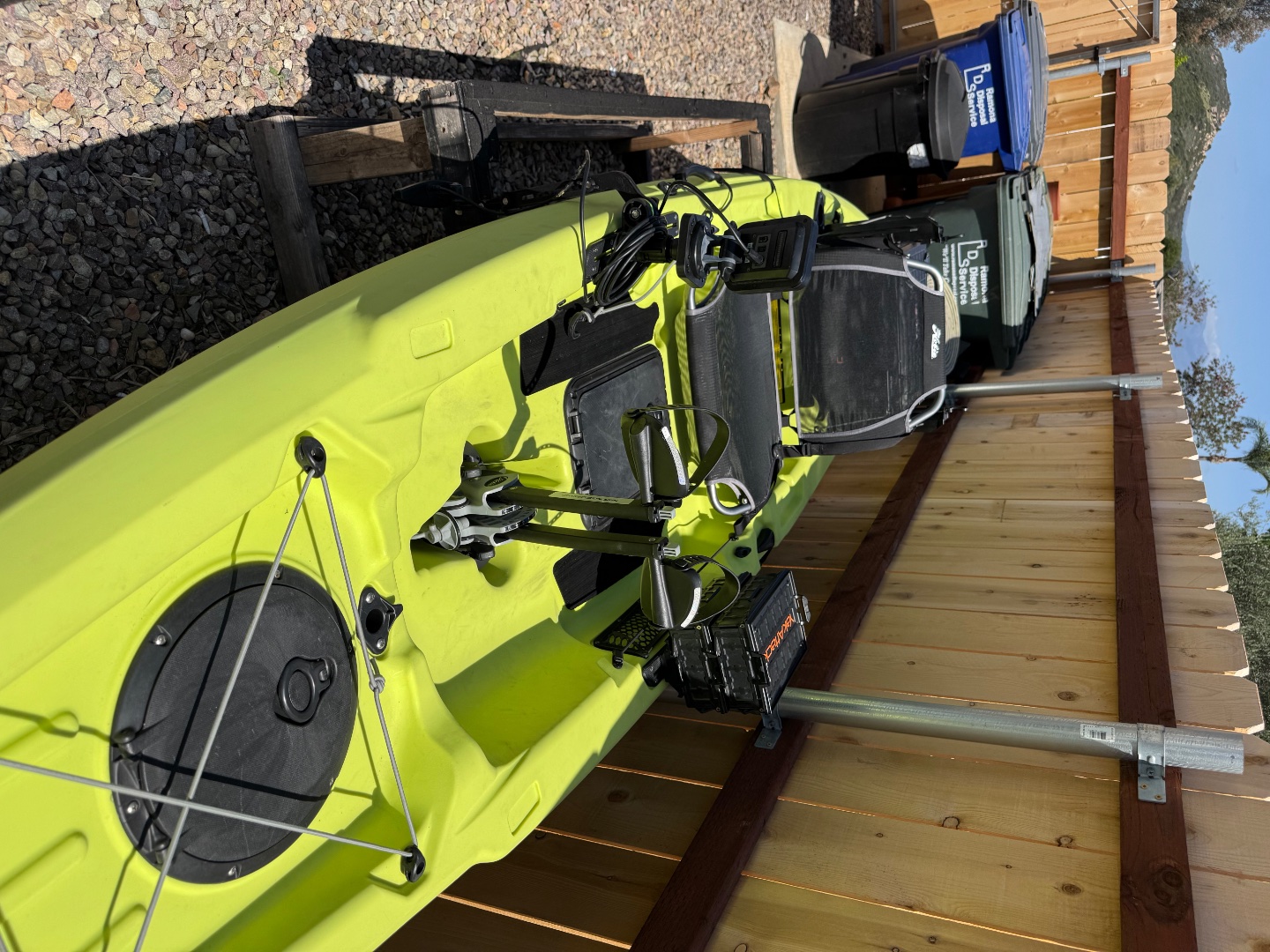 - Red husky dry box for all your kayak gear while storing it