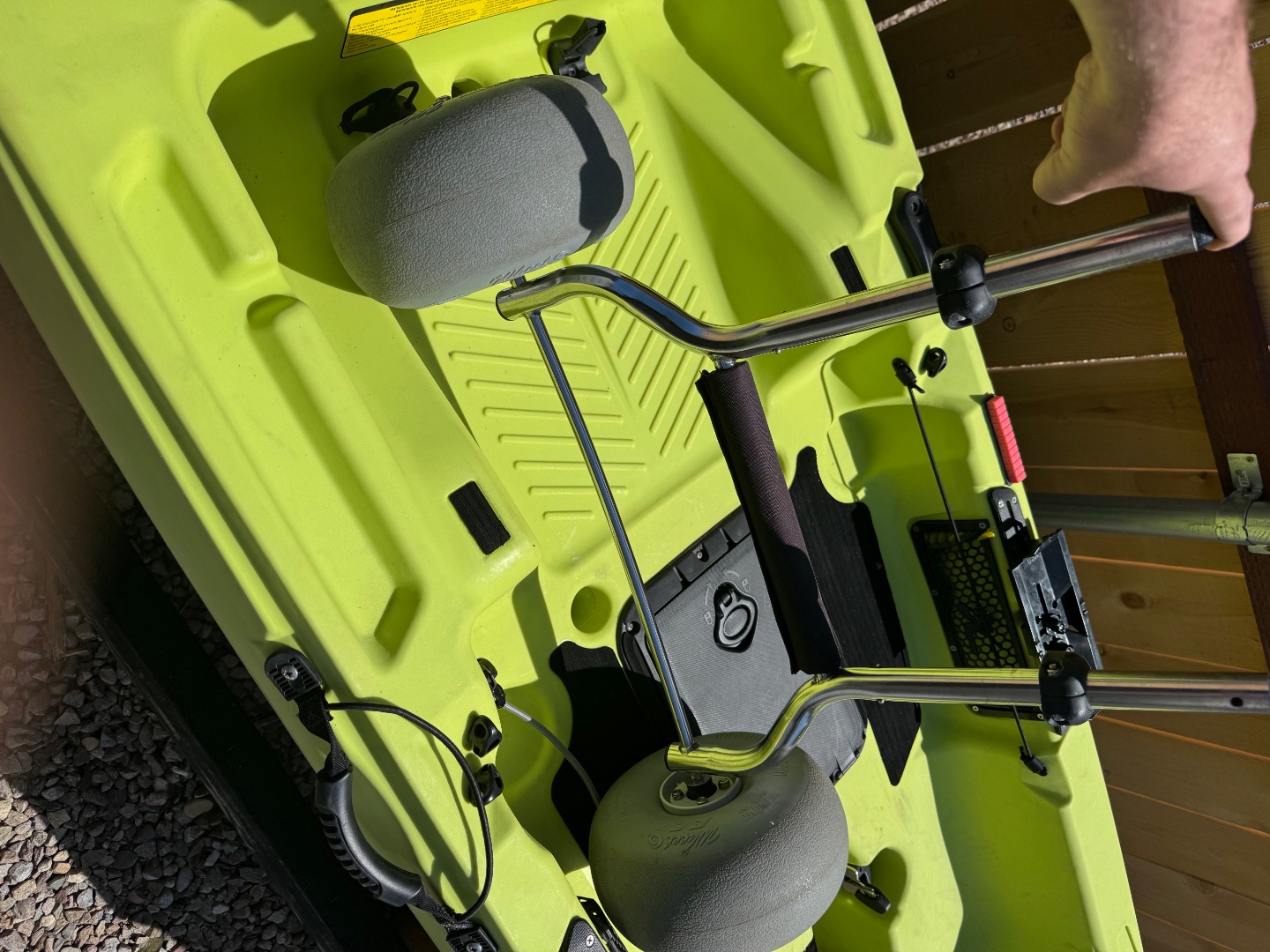 - Round hatch relocated to bow of kayak with drop in dry bin