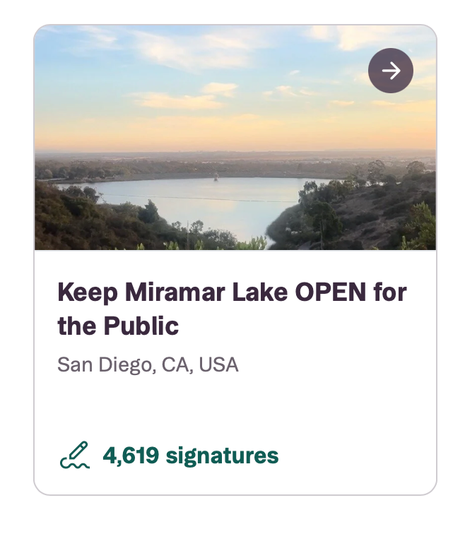 If you go to https://www.change.org/topic/san-diego there is currently a petition to sign to keep Lake Miramar open more than just 2 days a week.
