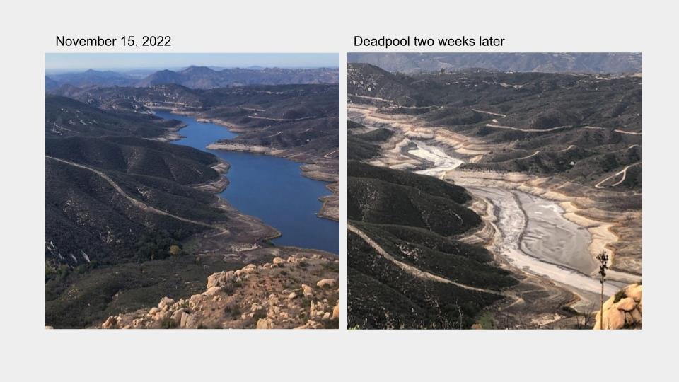 The general manager, Carlos Quintero, said the Sweetwater Authority still values dewatering Loveland, which is draining it completely. Outside of some emergency, the earliest the process would start would be October, and with historical patterns, it would be done by March 2026, IF Sweetwater is allowed to do it and chooses to do it. The GM says he can. Maybe he can, but knows it's not a good idea by now. Perhaps he can't, but doesn't know it yet.