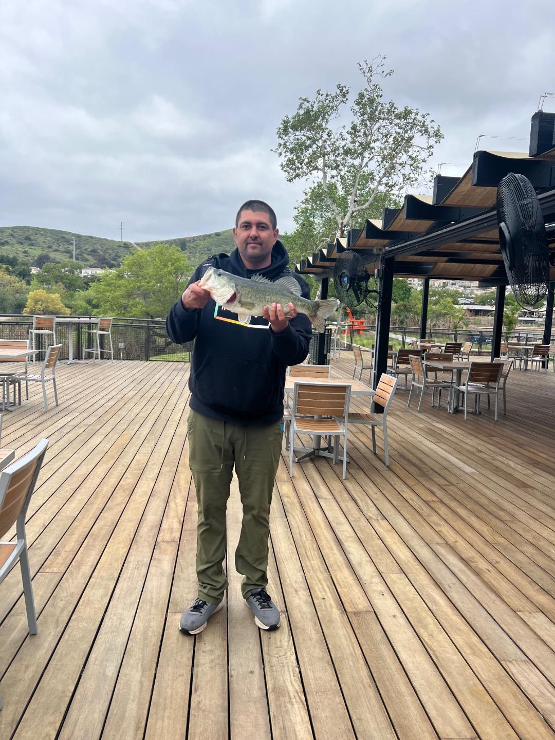 Hit santee lakes this morning as soon as they opened to the public 7am hit lakes 2 and 3 for nothing and finally hit lake 4 I fished all around the pond and was on my phone not paying attention when i noticed my line moving to the left I quickly set the hook and I was insta hooked up with this nice bass!