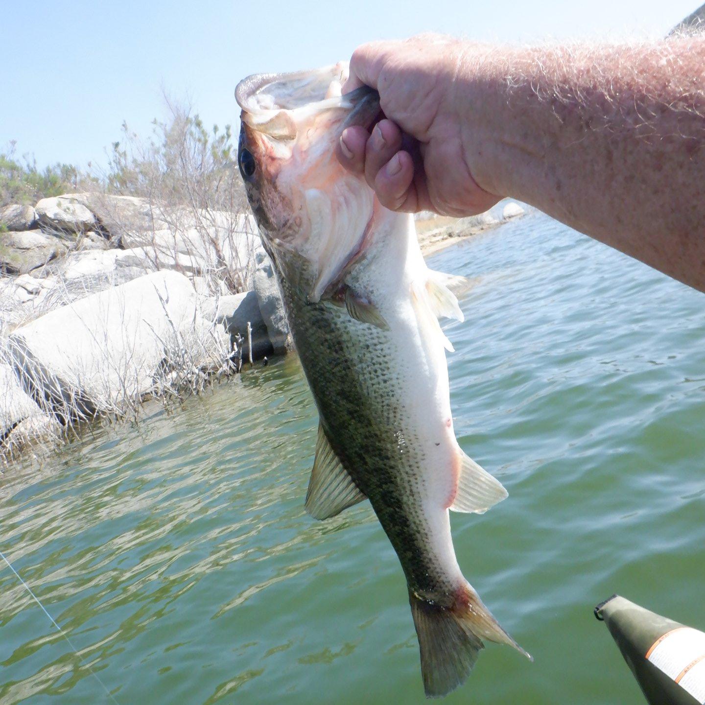 Got in line at 3:30 let in 4:05 talked to Dave (Early release) and Chuck (619Bassin) as we setup to head out. Headed out and met up with Dave he was fishing topwater doing well. Topwater for me was okay. Dave was talking to me about Chris catching fish when he talks and bam big topwater hit nice fish came off on the jump. But Dave and Chuck are a gun and run guys. Me I work an area then move, so I didn't keep up to talk more. Didn't really need to as I was doing good. Heading down Hauser picking up fish on the regular I decided to just cruise back deeper. I notice a bass just sitting just under the water so I would throw my bait to follow him down fish on. It happened 4 times. I did hear from Dave he just caught a nice 3lber on topwater then bam I hook up with a 3 1/4. It was fun watching those guys hook up when I final caught up. Good day wind not that bad. Fishing was great landed double what I did in the boat last trip. The pics are of fish close to 3lbs one is 3 1/4.