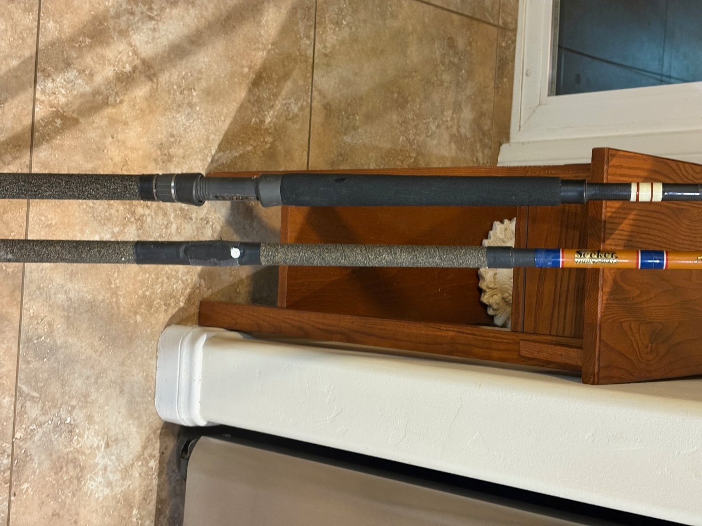 Two rods: Very low-use tiger stick, 20-50 pounds. The second road Seeker American Deck had style, measuring 8' and weighing 20-40 pounds. This is not the typical Big-5 garbage, but rather a high-quality, second-hand rod in excellent condition, and a relevant offshore model—one with a broken eyelet, included, because I just dropped the rod on the tile floor, making it a free rod, worth getting the eyelet fixed.