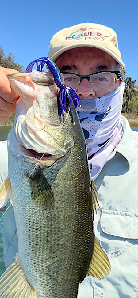 Not sure where I wanted to go this morning so I loaded up my kayak and made a quick decision to head up to Lake Miramar. With a little fog over the water I searched for something on top, but still not really happening yet other than a few that rippled the surface in about an hour of looking. So I switched over to plastic worms and had to work a little bit harder than my previous other 2 trips and finally got my first bass. In a little bit I landed another one which was small so I ventured out into deeper water and started tossing a blade bait. I was still thinking there may be bass out there chasing baitfish deeper since they were not on the surface. I was just about to give up and suddenly the