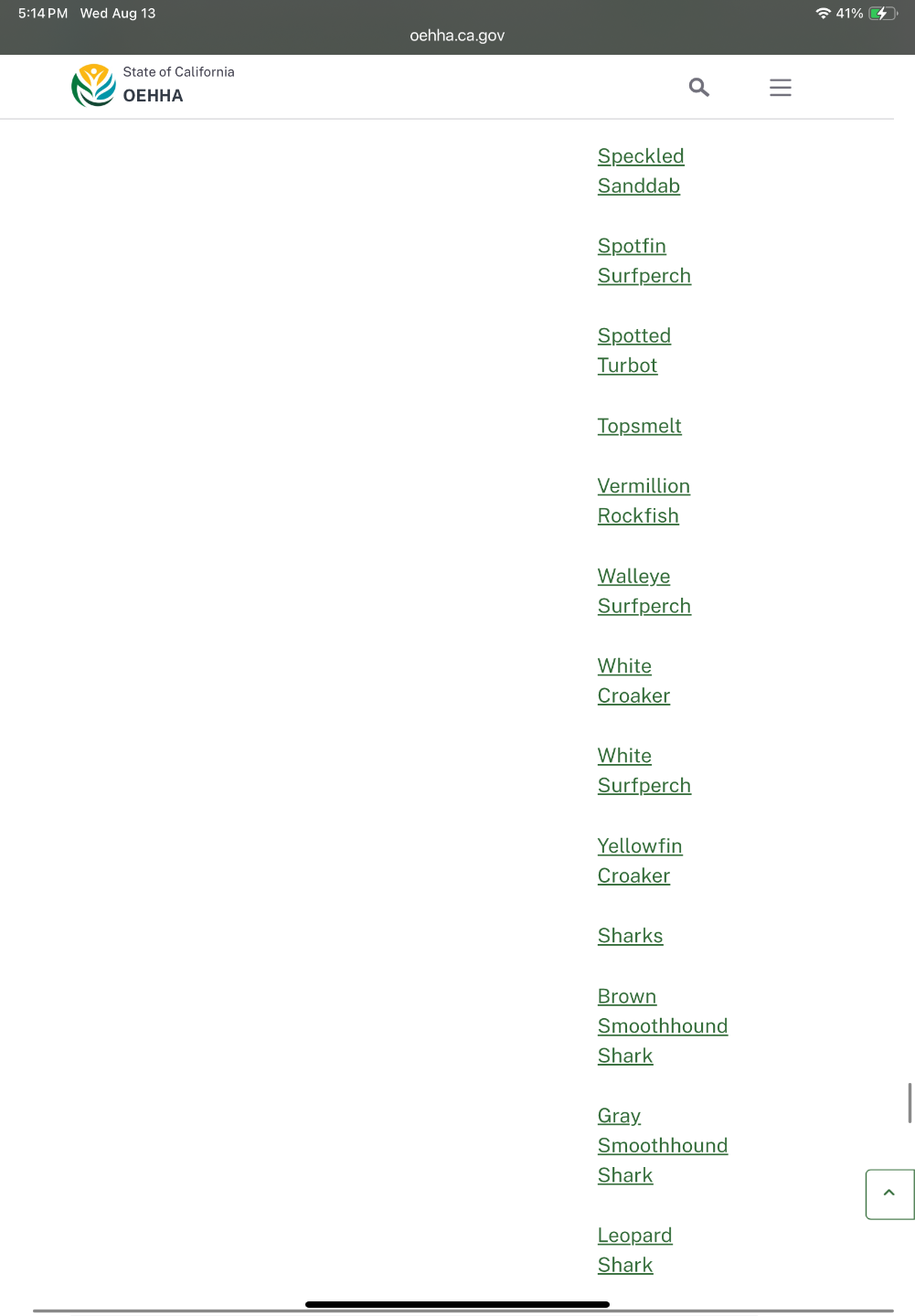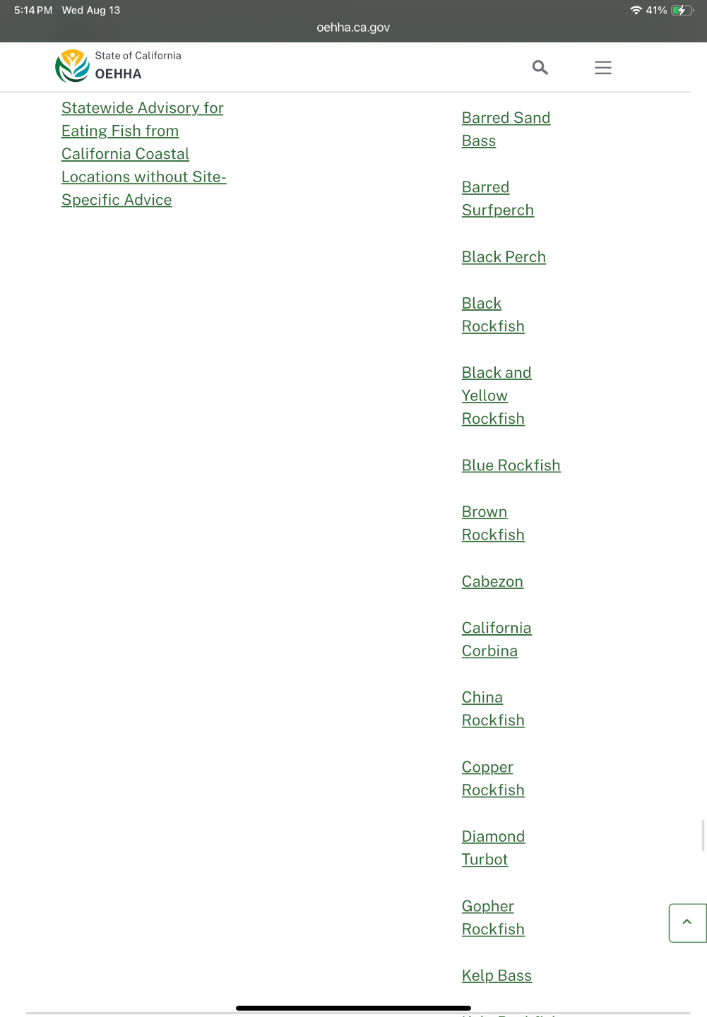 Fish that have restrictions for eating in California.