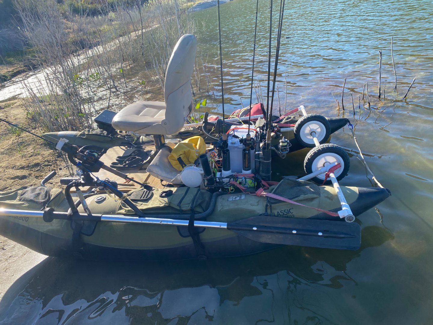 Can you post some pics of your pontoon one of these days? I’ve got one I’m looking to rig up myself. Mine doesn’t have a basket or motor mount on the back, so I think I’ll be using a milk crate on the back to serve both purposes. Just looking for a simple setup to bring out to the reservoirs a few times a year. I did Barrett on it with just the oars, and the paddle back with the oars was a killer in the wind haha. El Cap has also inspired me to get my setup dialed in…