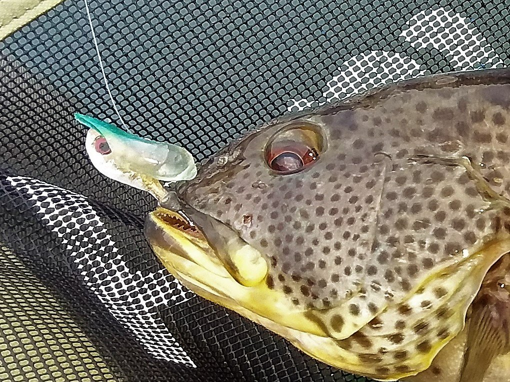 And the spotty from the previous pic.......which hit the bait, tore off most of the tube....didn't stick...but came back to hammer the nearly naked leadhead. Gotta love the angry spotty energy....