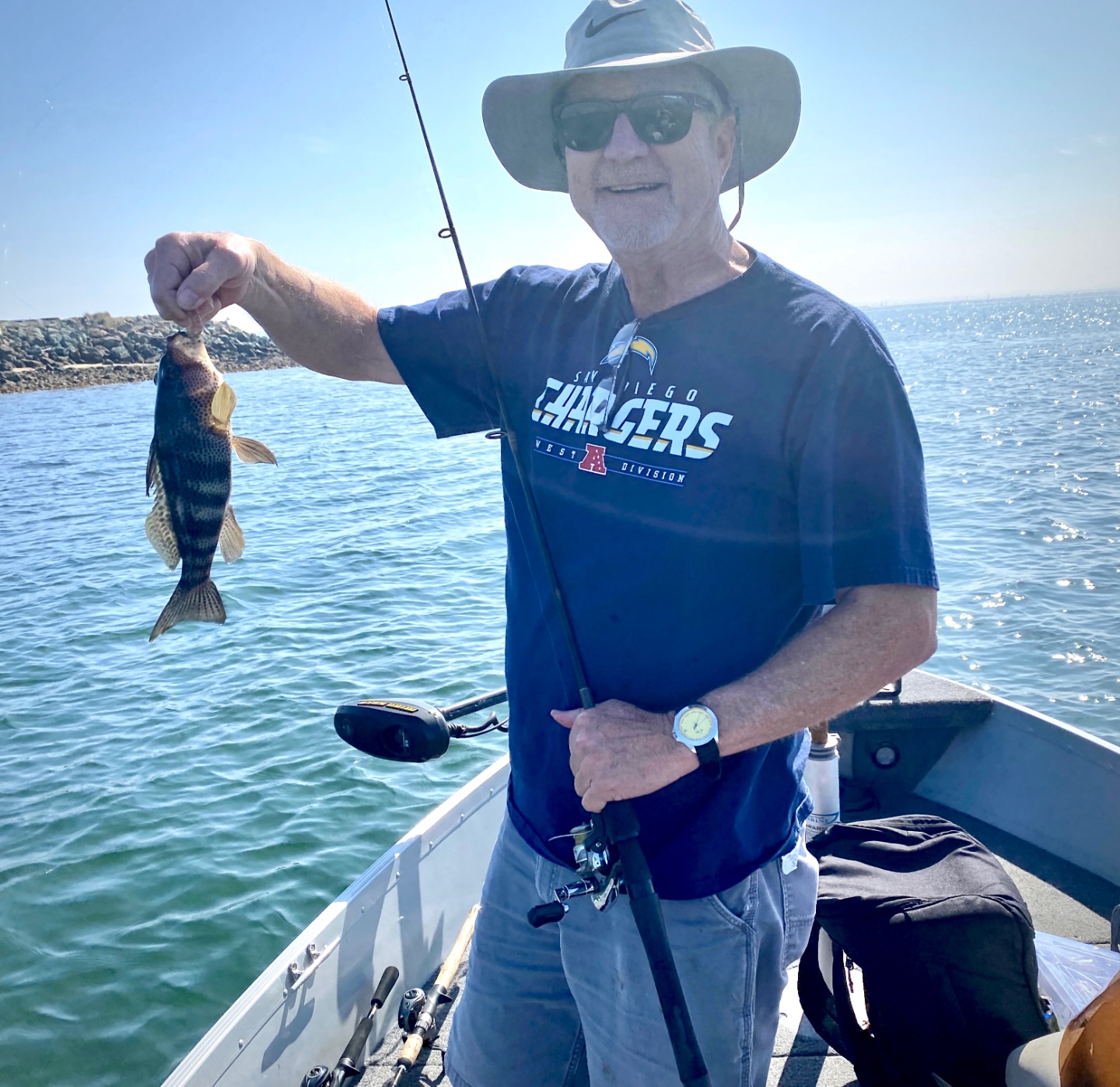 Got in a few hours early today on SD Bay. Steady spottie bite south of the bridge on plastics but a red glitter translucent curly tail was the star. Buddy Dan spotted it in my box and pinned one on a 1/8 ball jig and proceeded to catch 2 to my 1. I was throwing a perch colored minnow with some success and it seemed like a red/orange/brown kinda day for us. The early breeze from the east was chilly but that gave way to a nice sunny morning. Hard to beat the fall here!!