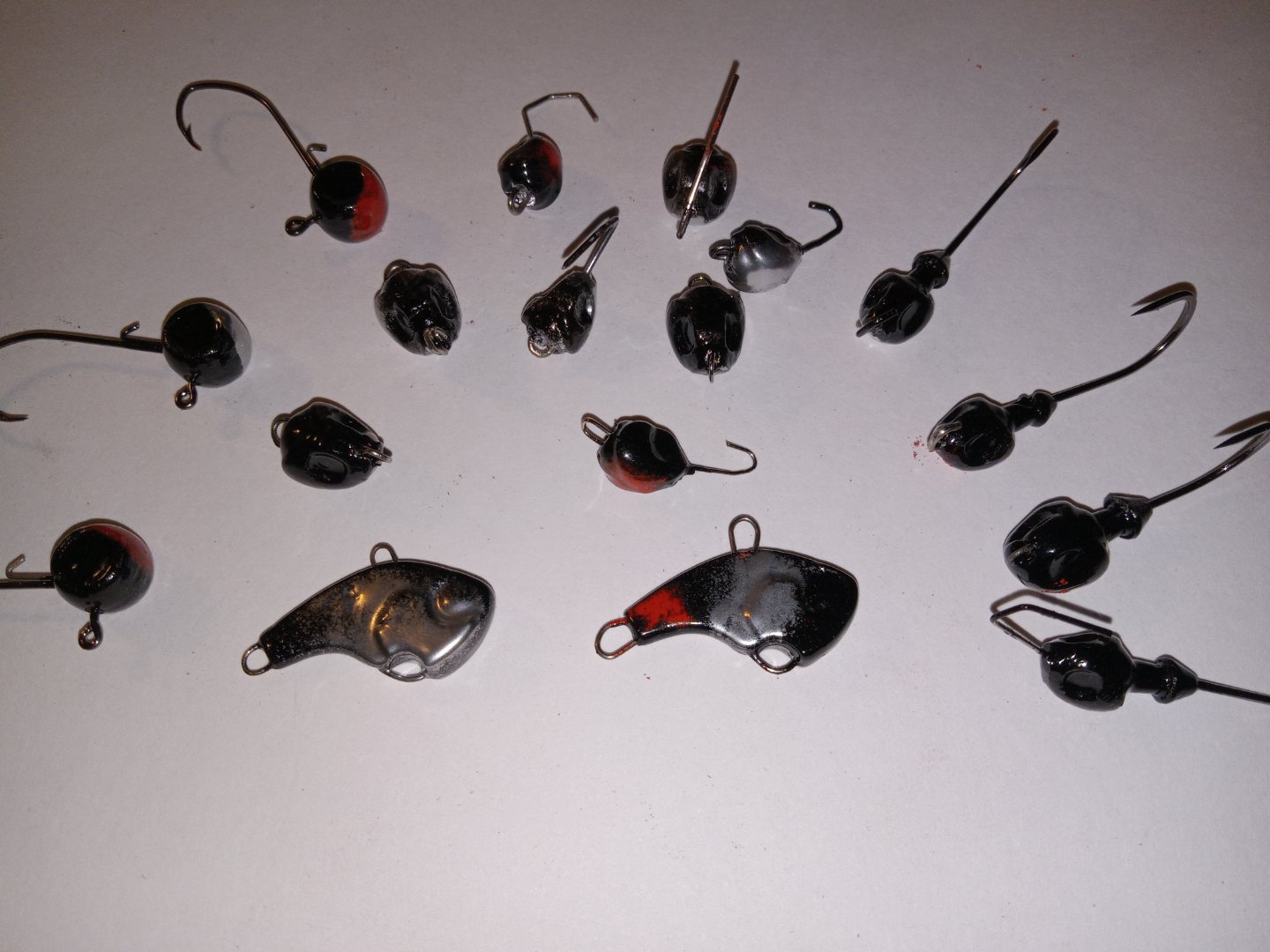 Started out to make some petite chatterbaits just for spotties. But when the lead's hot might as well pour some other stuff. And when the fluid bed's hooked up, might as well...and so it goes.