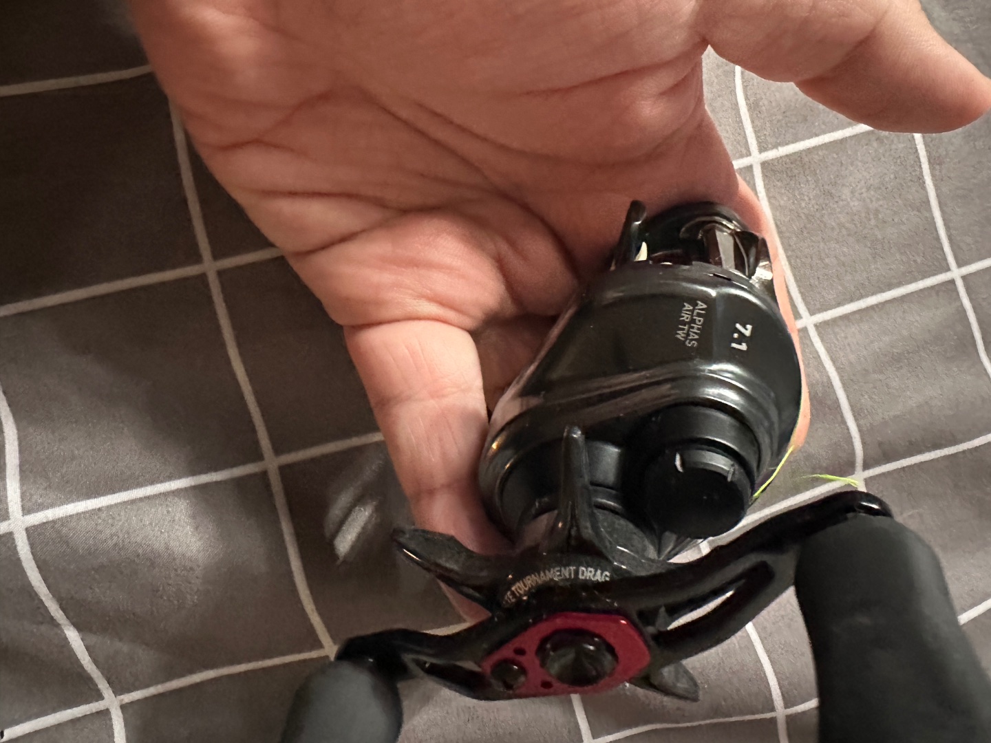 Alphas air tw 7.1 - used at the local lakes, loaded with 20lb daiwa I think. $150.