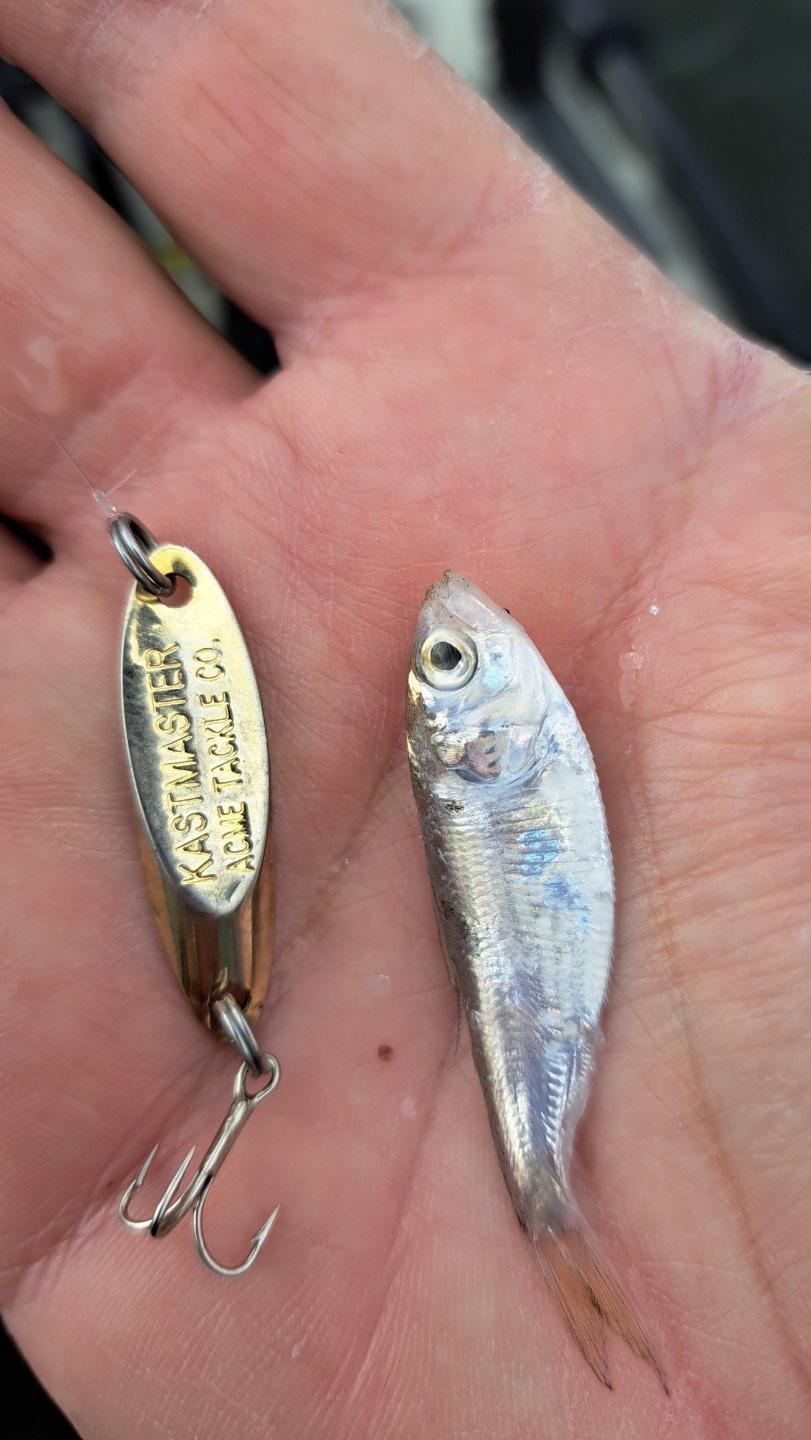 I found my open water bass cruising behind big schools of shad down to 50' deep, with a few shad balls being pushed up to less than 20' deep. Dropped some of my favorites on their heads: dropshot, a small kastmaster, and a sonar minnow and found some biters. Also a lot of followers that wouldn't commit!