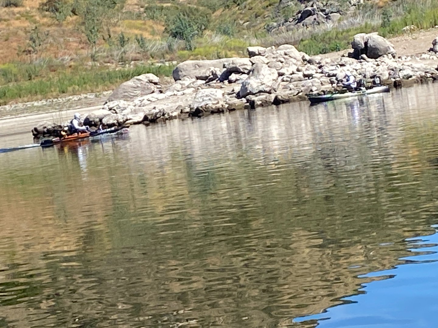 Was in line early with 20 others. Mad dash to get on the water. I don't do mad dash. They are taking water again, it was down a foot from Tuesday. The day started off slow and pretty much had company where ever you go. Took me a while to figure out most had pulled out a bit 10' to 20'. There were some chasing fry at the bank. topwater got some attention but no hook ups. No real wind until the afternoon. Then I was able to get them to bite. I did not break my high, don't think I will. I did try for bigger ones, I could see them. The clones would eat my bigger baits. I caught the biggest ones on small baits. But i did end the day with 40! Biggest again 3 1/2lbs and some double netters.