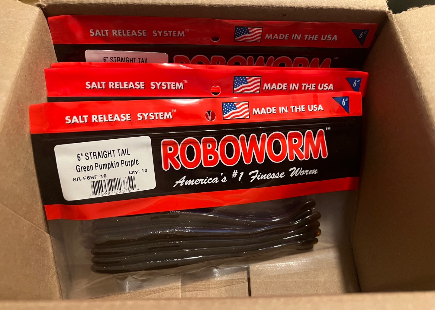 If I had to pick one color; the Green Pumpkin Purple 6” Roboworm has caught at every lake I’ve fished here. Seems to work in both clear and stained water. Any combination of brown/purple, green pumpkin/purple, green pumpkin/blue seems to be pretty universal but this one specifically is my #1