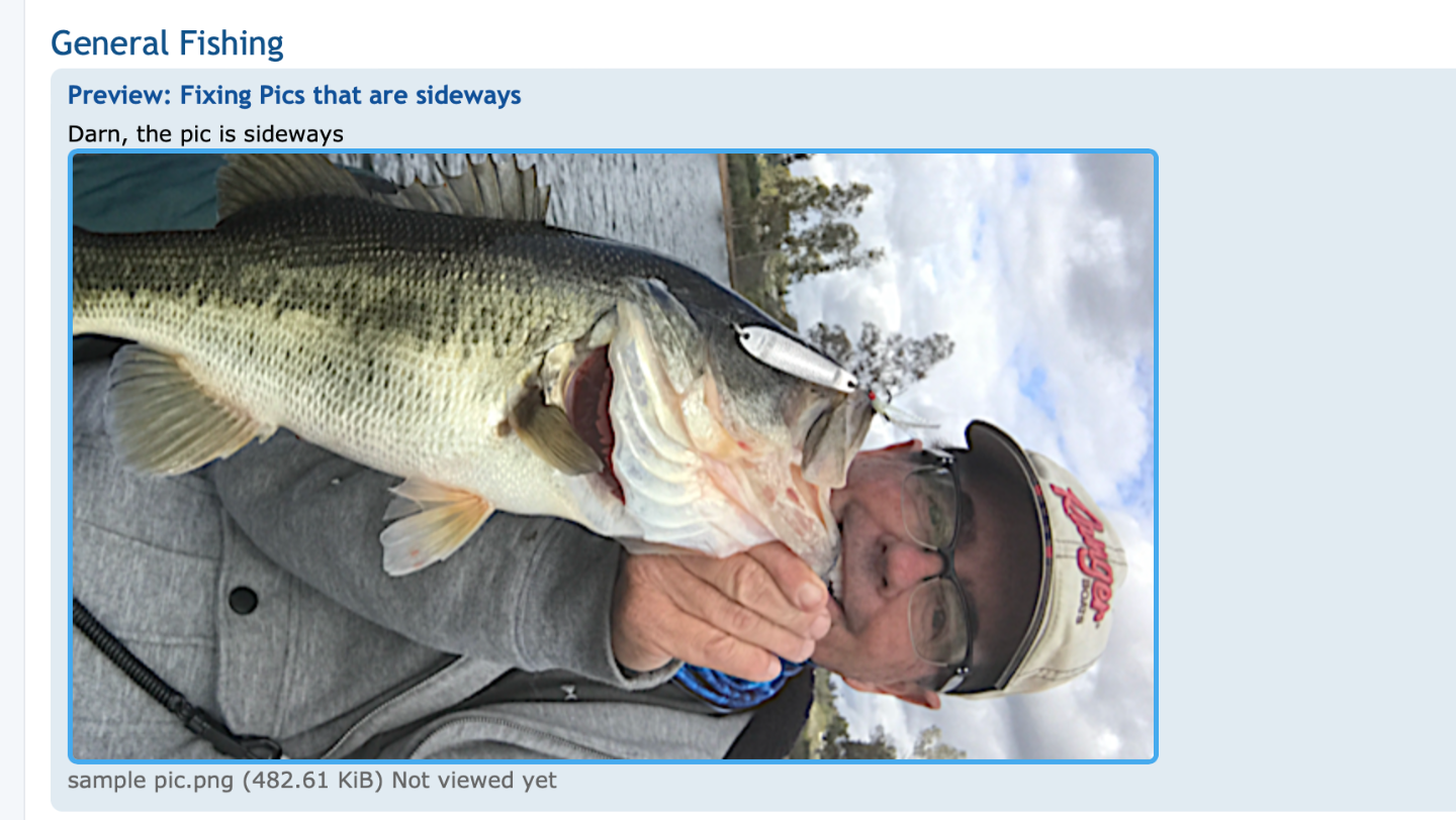 In the Announcements Support and Feedback area of SDFish there is a post about how to fix a sideways photo by rotating it.