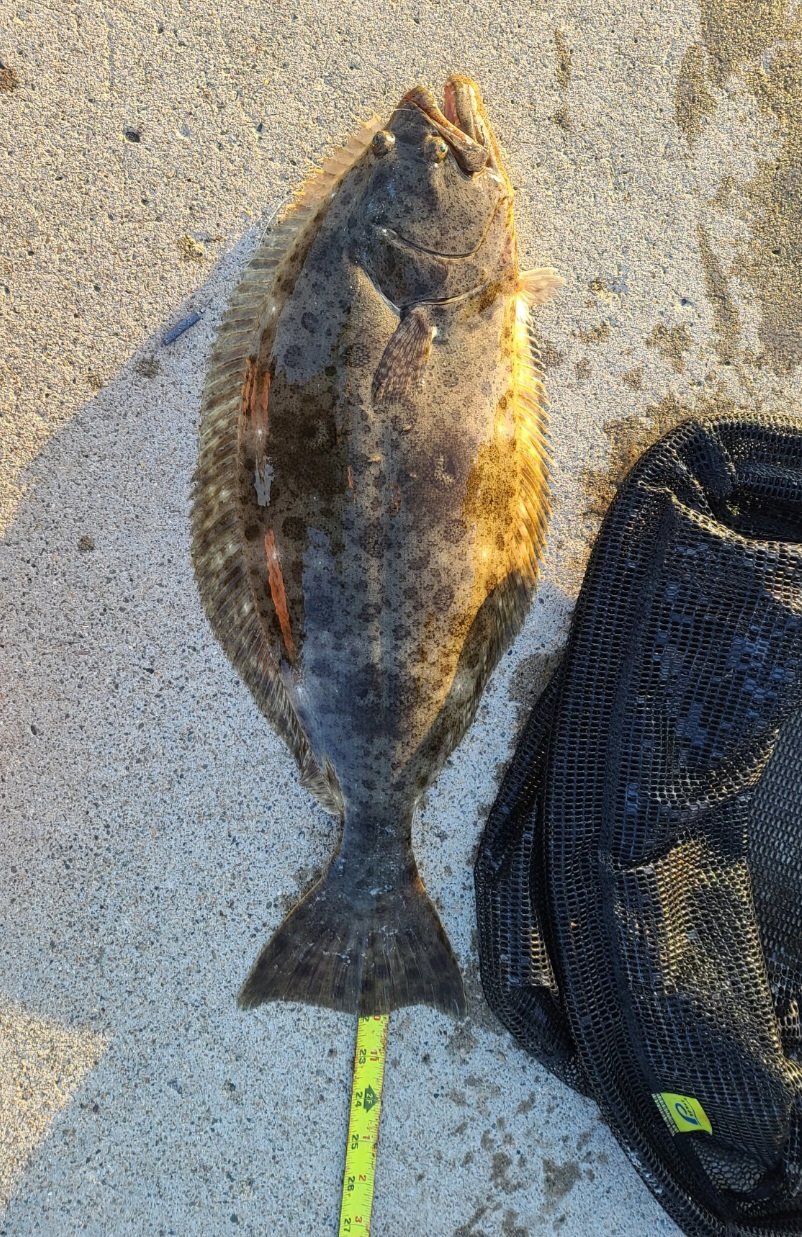 On Sunday, the bite was slow earlier in the day and picked up in the evening. We got into a little halibut bite later in the day and caught 5 shorts within 30 minutes. Well, maybe 4 shorts depending on who you ask because one of the halibut was barely touching 22". We released it because DFW was around checking licenses, and we didn't want to risk it. I've never seen DFW hop off of a boat onto the rocks to check for licenses before. Not sure why they chose to use a boat instead of a truck, lol.