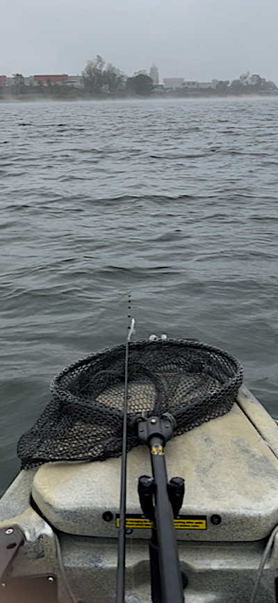 Anyway....it was fun to be on the water again. It was fun to play around with the electronics and there are lots of shad in the water. I was surprised that there was no fish busting, but a buddy told me that the other week from shore he caught a few on topwater. The weather was strangely cool and semi foggy which made it nice. So after a number of random casts "walking the dog"...I mean "walking a Sammy", the water exploded and I landed a fairly decent bass. Continued with that bait but no more takers. I then just went to various reaction baits and finally had some results with an under-spin to have one come off, but landed 3 small bass. A fun morning and can't wait till I can start to flip a Tokyo rig back in the tulles when the water gets high enough.