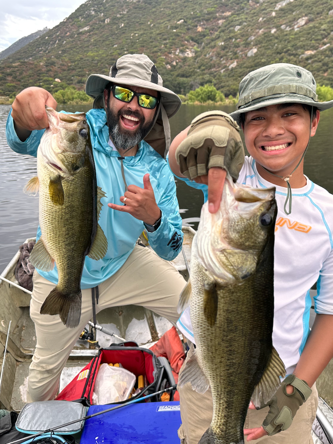 Here's my son and I after doubling up mid-lake with poppers: