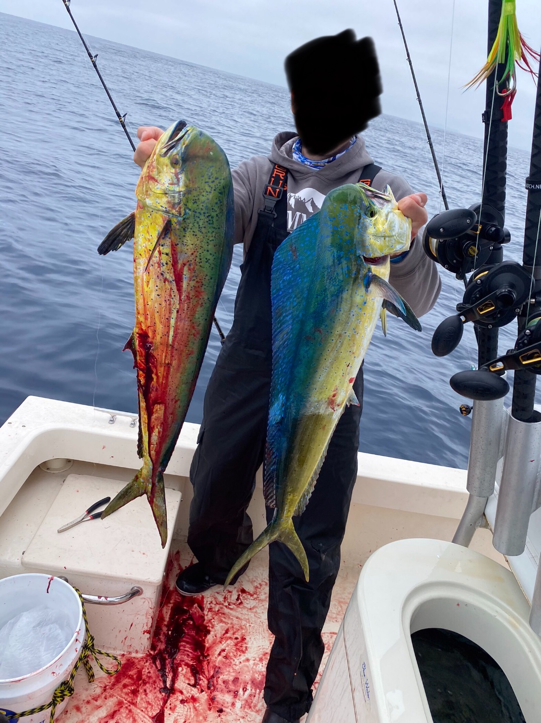 Me and the broski picked up 1/2 scoop of quality bait that was well worth the line, had two double hookups just south of 302. Then farmed a couple of open water dorado, and landed a yellowtail that made multiple runs into the paddy. They bit 15-25# flytline and the slow troll, one followed a tady 45 to the boat but no jig bites. No troll bites. Light wind, 4’ mixed swell 72 degree water, just beautiful. 2 Mexican mahi limits and a yellowtail for the day. Blessed to have these opportunities.