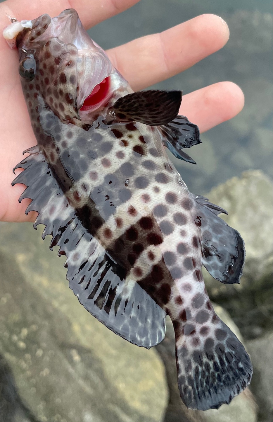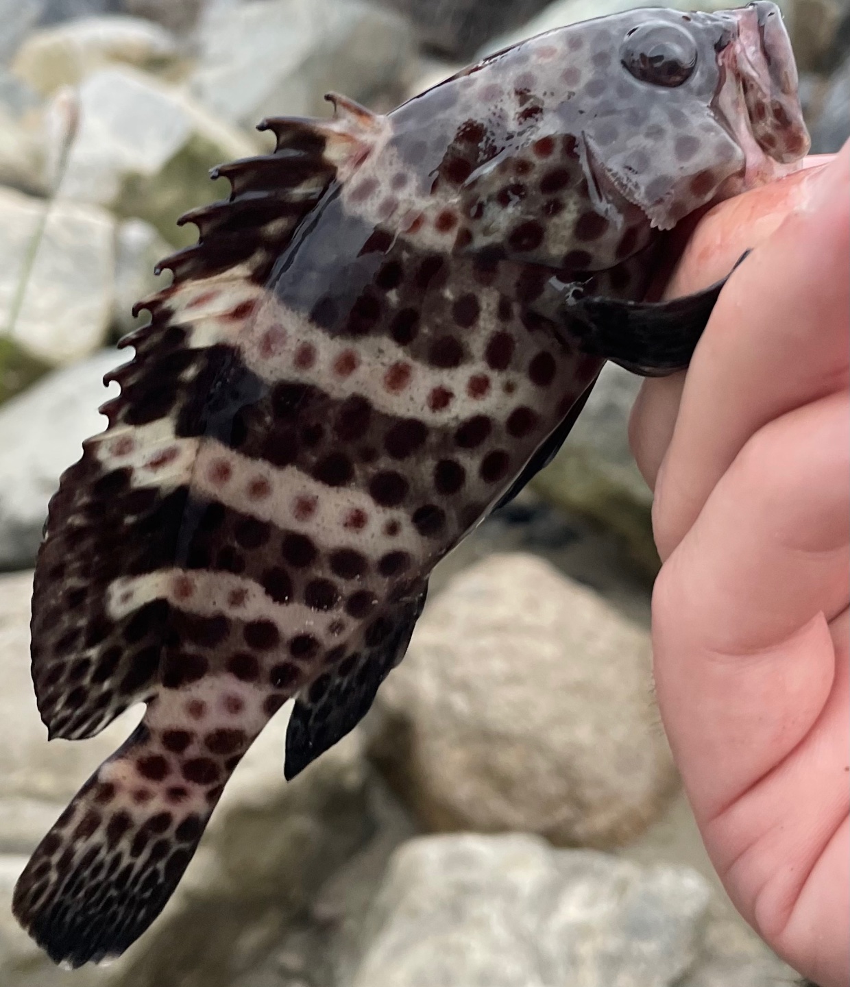 Juvenile Spotted Cabrilla caught before the rain. Evidence of a breeding population in our local waters? Or just a lost fish…