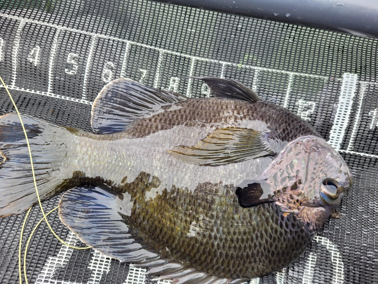 Started the day in cold and windy conditions. The water level is way down. One of the tree lines I like to fish is up on the beach. Moved to a different area and found a few willing to eat. Ended up with 6 Coppernose and 1 Hybrid.