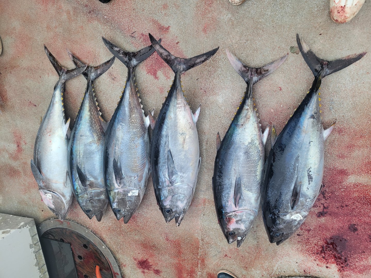 Howdy. I wasn't gonna write this up but a fellow sdfish member inspired me to do so. I did a turn around trip so two in a row. The first trip went as follows... Arrived in the zone early enough to get a 2 hour night bite which was super surprising to me, fished hard but nothing was cooperating. Grey light brought the first fish aboard, with my first one at about 60 pounds coming on my sinker rigged truline 6x cobraglass. After a few fiah came over the rail, it dried up and we went lookin. Stopped on a couple more little stops for one or two fish. Then this clown with a Walmart spinner hooks up and the sheetshow really began. Round and round the boat, 7 or 8 times. Had every single deckhand pull on it, noodle rod and all. About 20 minutes into the fight captain Kley had a call from another sportfisher about a half mile away. They had crew limits and were holding the school of 20-50 pounders for us. We watched this asshat waste everyone's time for an hour and a half with only half a dozen fish other fish were decked. Kley finally killed the dumbass 80 pounder and we headed to the spot of fish. By the time we got there, a dozen skiffs and another 80 foot sportfisher was on em. The fish had slowed down the bite but we still managed 35 bluefin for the day and a dorado. 7 of the bluefin were put on the deck by me, 6 with my trueline 5x. I can count the number of folks I have told about themselves in the last 5 years on one hand. I told the guy to his face that he was a selfish POS, that 35 other passengers had paid $400plus to catch fish and I hoped he enjoyed his. I explained the scenario and told him to stow his crap ass gear. What a double.