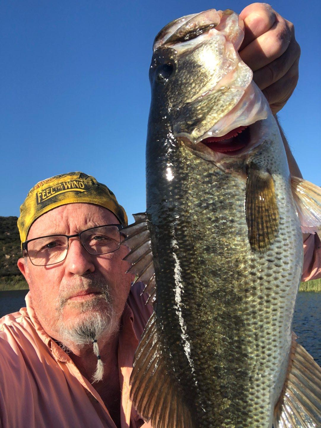 Got one on a drop-shotted Yamamota pumpkin Kreature bait hooked once through near the nose.