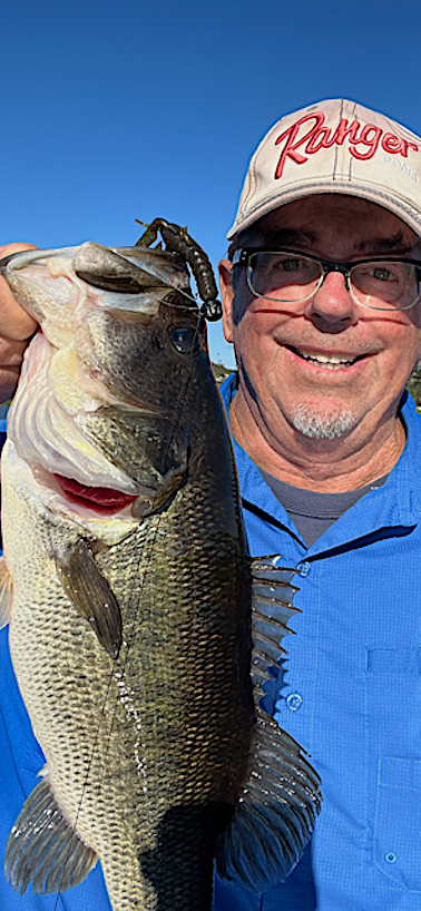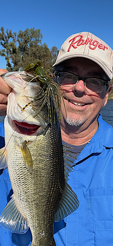went back near the same area and pulled in another bass on a jig with a crawfish trailer. I was planning to leave and Dave, a regular
