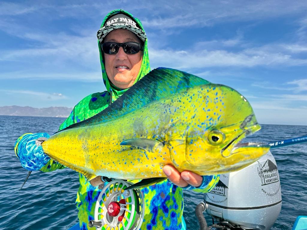 Got back last week from a fly fishing trip to La Ventana. The dorado fishing was pretty good, but not spectacular. Sardinas were no where to be found, and the fish for the most part followed them. We ended up using ballyhoo, which worked to attract the fish, but not near as well as sardines. Still, we caught dorado every day and had fun. Friday evening we were getting checked out and ready to take a Saturday morning van ride to La Paz for our flight when we all got flight cancellation notices - hurricane Norma was supposed to head east below Cabo, but instead kept heading north and ended up going right over the top of us. Couldn't get a flight out until the next Tuesday. Exciting to say the least, and I spent the next two days with a shovel helping fix the resort roads and arroyo panga launch.