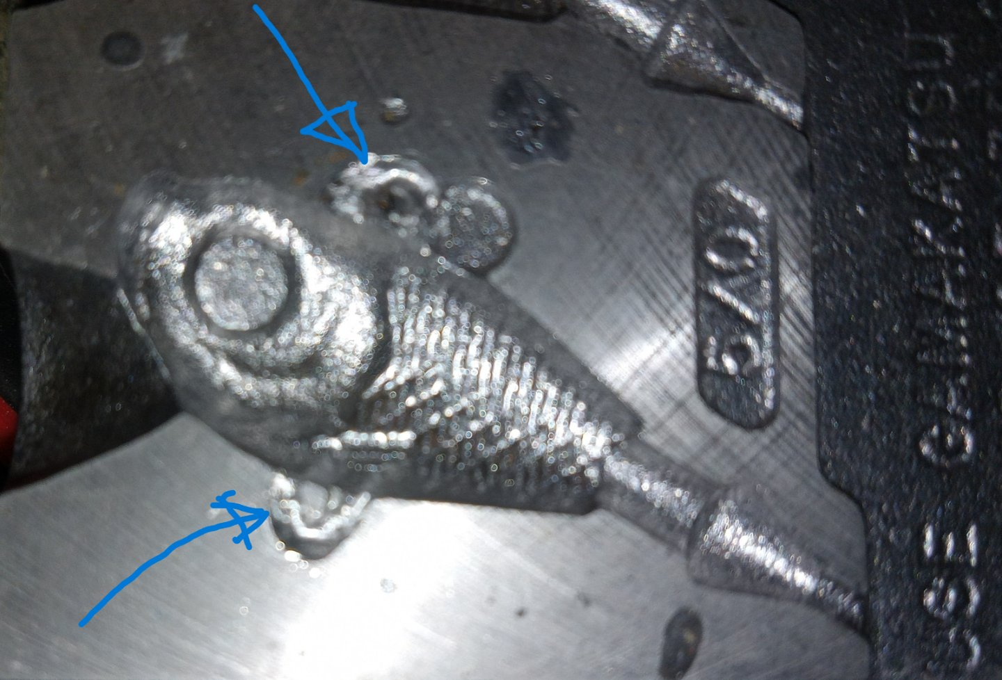 The cool part is that it doesn't mess up the original mold. If you want to cast up regular Ultra Minnows, you can block off the new parts of the cavity with high temp rtv to keep the lead from flowing in there....or just trim off the extra lead loops after you pour the lead.