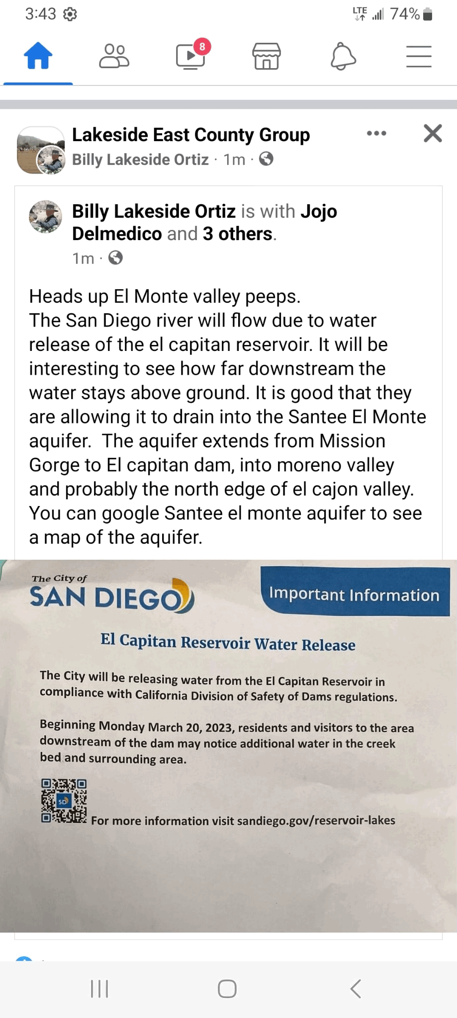 My understanding is late March they opened the spillway for El Cap, to allow a bunch of water to enter sd river....